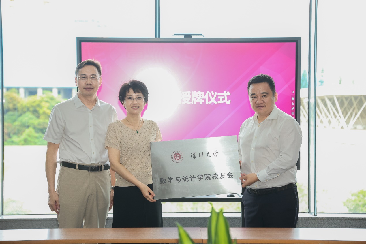 The General Assembly passed the list of members of the Executive Council of the Alumni Association of the School of Mathematics and Statistics of Shenzhen University. Alumnus Zhang Chunhua, member of Shenzhen National Committee of the Chinese People's Political Consultative Conference (CPPCC), chairman of Shenzhen Federation of Industry and Commerce, member of Standing Committee of Shenzhen People's Congress (SZPC), executive chairman of Shenzhen University Alumni Association and chairman of Langhua Group, is the honorary president of the College Alumni Association; Huang Shun, member of Shenzhen CPPCC, vice president of Shenzhen University Alumni Association, president of SZPC, and board member of Shenzhen Houde Academy, is the president of the College Alumni Association; Chen Tairu, Chen Haiping, Zhang Qian, Lin Baocai, and Liu Zhaoting Mr. Huang Shun served as the President of the Alumni Association, Mr. Chen Tanyu, Mr. Chen Haiping, Mr. Zhang Qian, Mr. Lin Baocai and Mr. Liu Zhaoting. Director He Yanhui awarded the license for the Alumni Association. Mr. Wang Yu, the secretary of the college, awarded the letters of appointment to the alumni.
