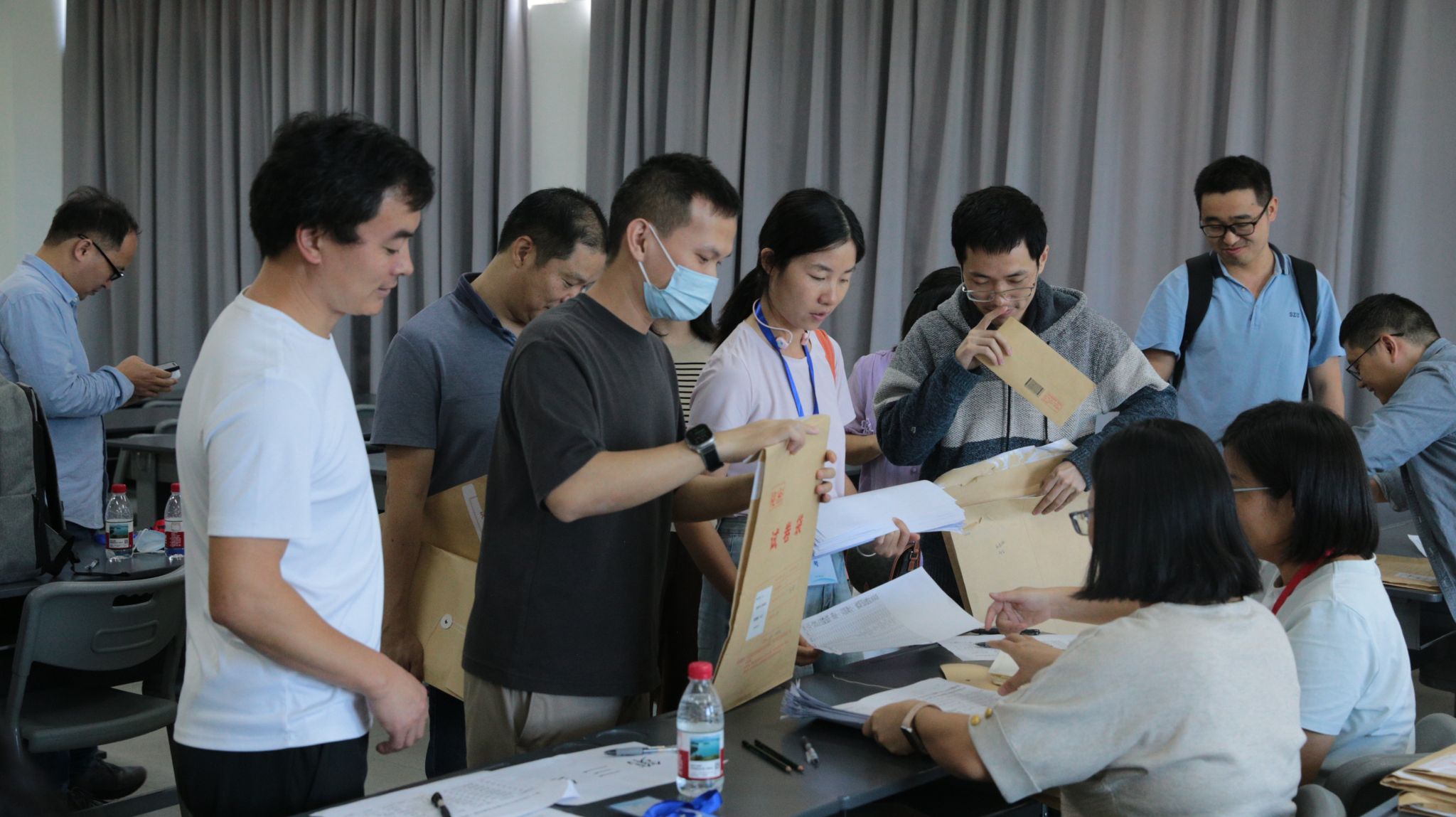 Examination office staff arrived at 7:30 AM to prepare materials. Proctors signed in at 8:30 AM to collect test papers and other supervision materials. Staff handed over test papers and proctoring documents to supervisors while clarifying examination regulations and disciplinary requirements. All proctors and examination staff diligently fulfilled their duties to ensure a fair, impartial, and transparent testing environment.