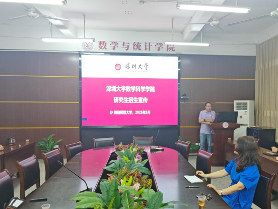 2025年5月25日,深圳大学数学科学学院统计学学科点负责老师及统计与数据科学系主任周彦教授前往闽南师范大学数学与统计学院开展研究生招生宣传活动,受到了闽南师范大学数学与统计学院前副院长施建华教授、统计学负责人付志慧教授、系主任李气芳教授及同学们的热情欢迎,并举行了招生宣讲会。