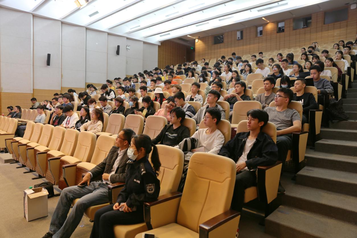 讲座开始由张国强老师上台讲话。张国强老师向学生们说明了学校对“反诈骗”宣传的高度重视并多次举行工作部署会议的情况,要求各学生干部和相关单位对“反诈骗”进行宣传,希望同学们能够加以重视,并请南山区反诈中心的陈慧警官上台发表演讲。