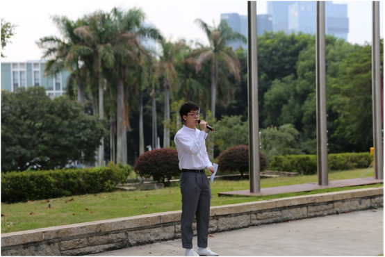 11月17日上午,深圳大学数学与统计学院在汇元楼天人广场举行“国际大学生节”主题升旗仪式,学院党委副书记张国强老师、辅导员钟晓姗老师、孙毅翀老师、2021-1期青马营成员以及全体2021级数院新生参加了此次仪式。
