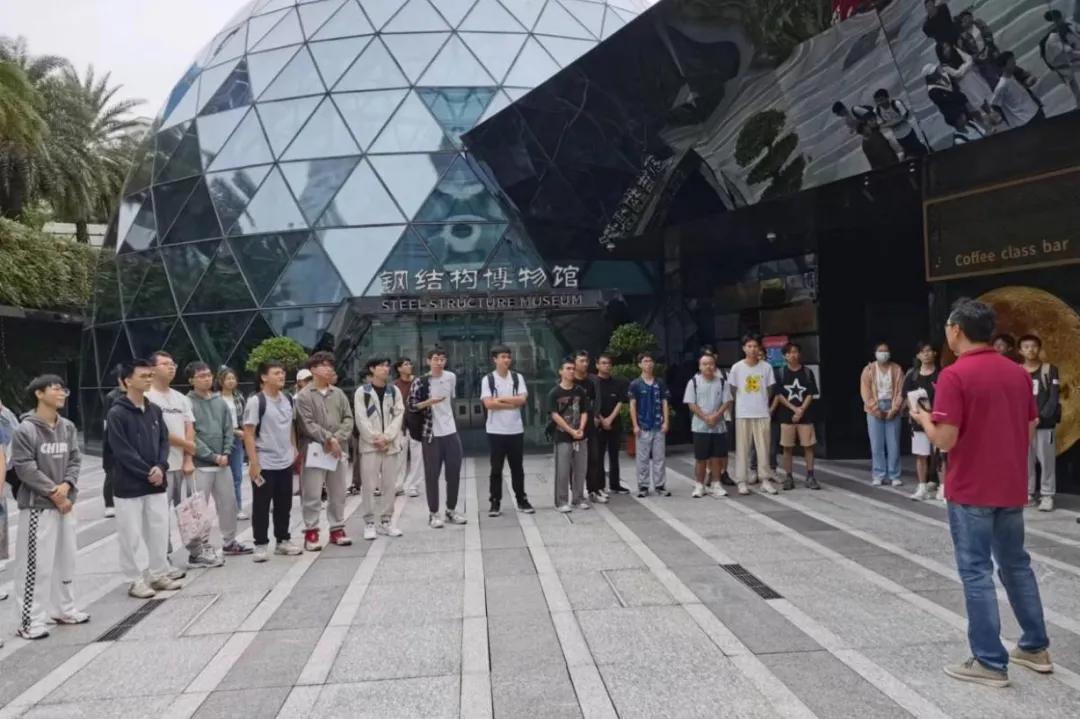 为深入学习贯彻党的二十大精神,坚持以党建带团建,以团建促党建,全面提高青马学员的学科素养和实践能力,激励学员树立脚踏实地的实干精神与强国有我的报国情怀,2023年10月21日下午,数学科学学院本科生第二党支部与院团委共同组织前往深圳钢结构博物馆参观学习。本科生第二党支部书记赵毅、副书记王寒霄、辅导员田力帆及全体支部党员、青马学员参加本次实践。