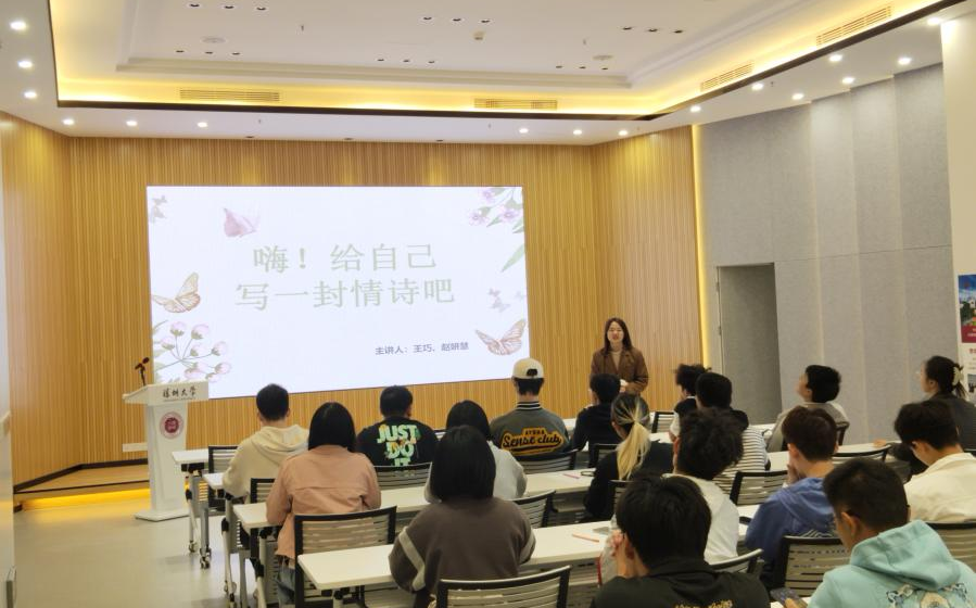 再接着,王巧学姐展示了查理卓别林写给自己的情诗,以此引导同学们给自己写一首情诗。同学们各显身手,创作了许多极富诗情画意的佳作。然后,学姐展示了部分同学的作品。这些作品无不流露出同学们的真挚感情,展现出自爱的力量。