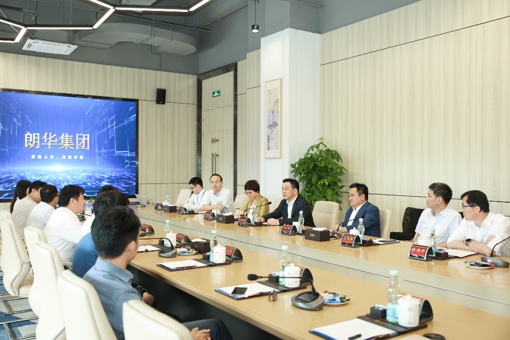 随后,大家举行了座谈会。会上,张春华董事长向大家表示了热烈欢迎,介绍了朗华集团的发展情况。朗华成立于2006年,合计注册资金18亿元,下辖30家分、子及控股公司,现拥有员工2000余名,资产数十亿元。企业立足微笑曲线左半边服务实体经济,提供从原材料、研发、设计到成品间的生产制造流通环节全球生产性综合服务。朗华遵循“勤奋、包容、创新、分享”的价值观,奉行“努力赢得尊重,专业赢得信任”的蜜蜂精神与“百善孝为先,百事行为先”的“孝行”文化,为员工提供完善的福利体系和发展通道,肩负社会责任,数年来为乡村建设、捐资助学、扶贫济困、公益宣传等公益慈善事业捐助达亿元。