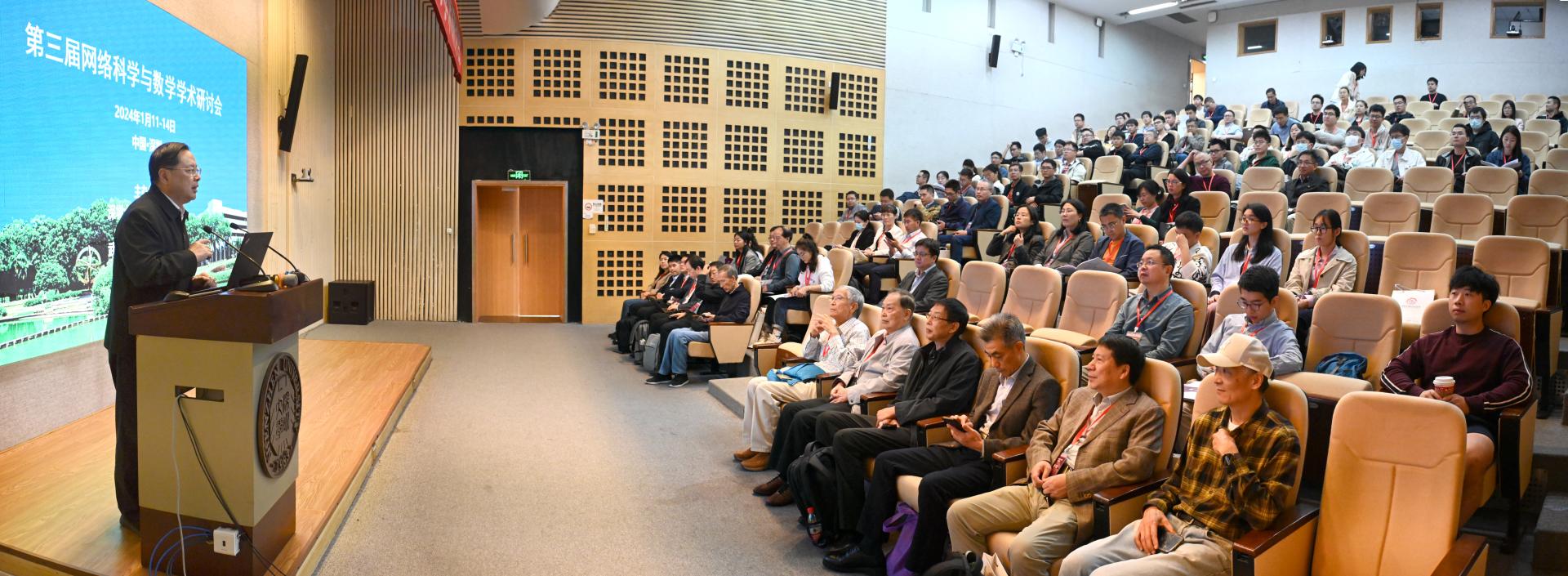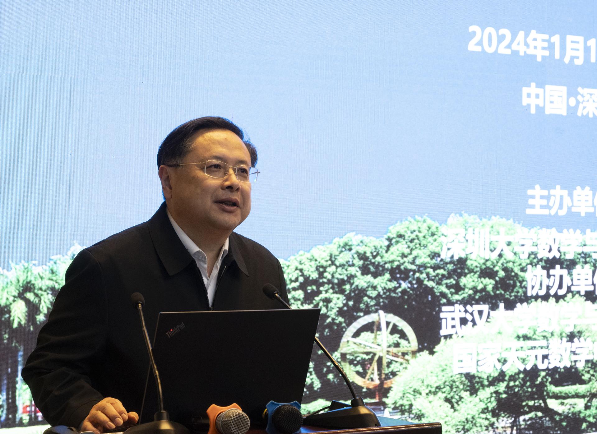 2024年1月12日--14日在深圳大学召开了第三届网络科学与数学学术研讨会,此次研讨会由深圳大学数学科学学院和国家天元数学东南中心承办,武汉大学数学与统计学院协助主办。12日上午9:00在汇星楼报告厅3号报告厅举行了简短的开幕式,深圳大学徐晨副校长首先向与会代表介绍了深圳大学的发展历程及近几年在各方面取得的成绩;接着香港城市大学讲座教授陈关荣院士对深圳大学承办这次高水平的研讨会表示感谢,并对复杂网络研究课题和前景做了介绍展望,深圳大学数学科学学院副院长鲁坚教授代表学院致辞感谢各位专家、学者莅临指导研讨会,并介绍了学院的情况,数学科学学院丰建文教授主持了开幕式。