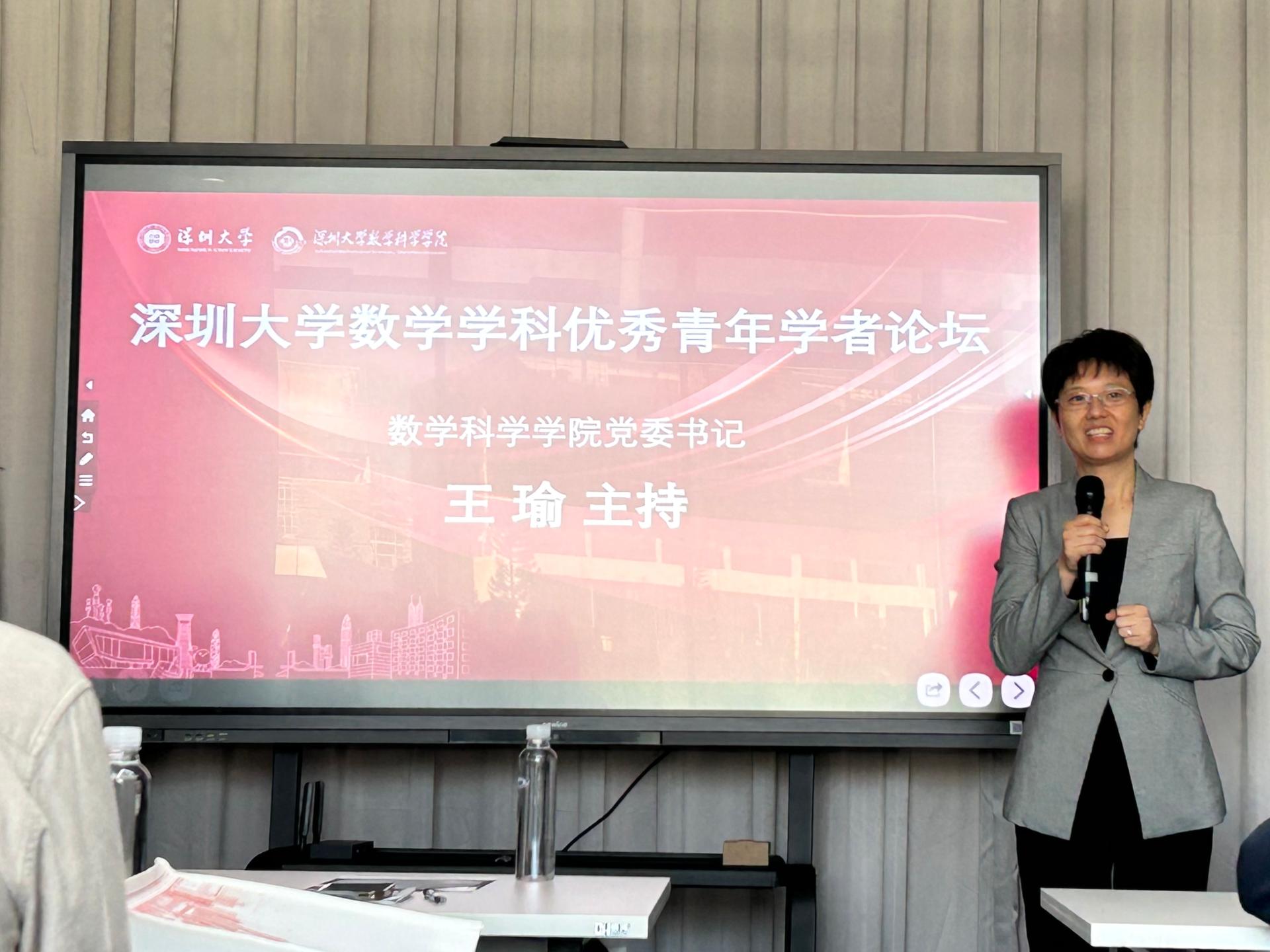 论坛开幕式由数学科学学院党委书记王瑜主持,深圳大学人力资源部副主任楚湘华,数学科学学院名誉院长王跃飞教授、数学科学学院院长以及学院多位教师参加了此次活动。