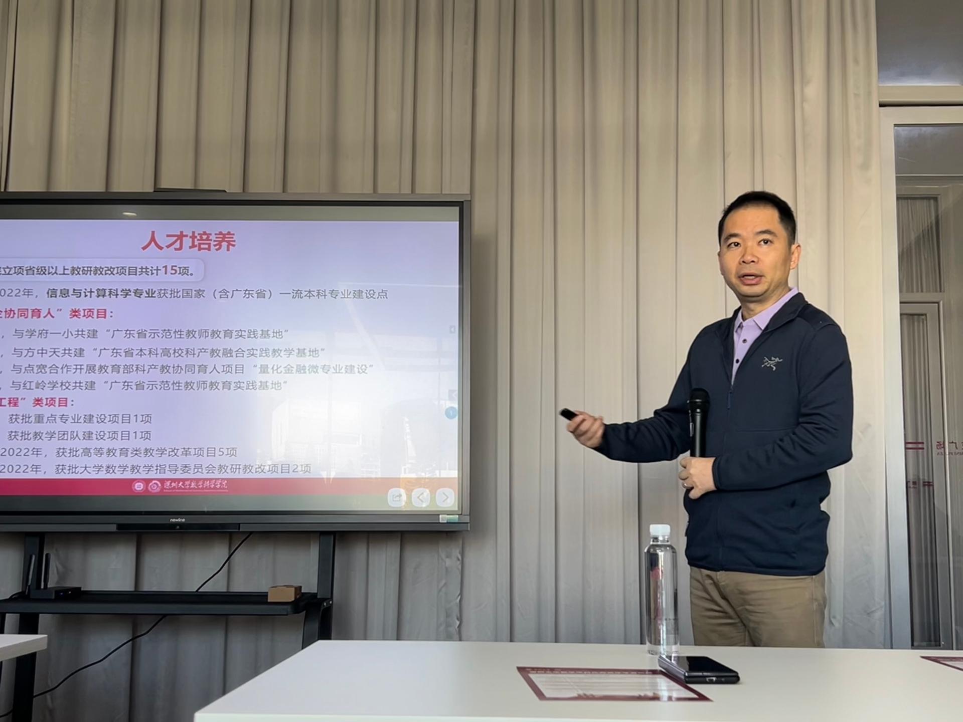数学科学学院院长介绍了深圳大学数学学科的发展历程。在过去的几年间,学院的教学、科研、人才培养及师资队伍等各方面的工作都取得了进步,数学学科正处于快速发展的阶段。为了吸引更多的优秀人才,学院提供多项政策,鼓励支持青年教师的个人成长。他表示本次活动将会是一个很好的机会,年轻学者们可以将自己的研究课题与大家进行交流,为以后长远的合作打下基础。深圳大学数学学院欢迎优秀人才的加入,和学院一起进步,一起开创美好未来。