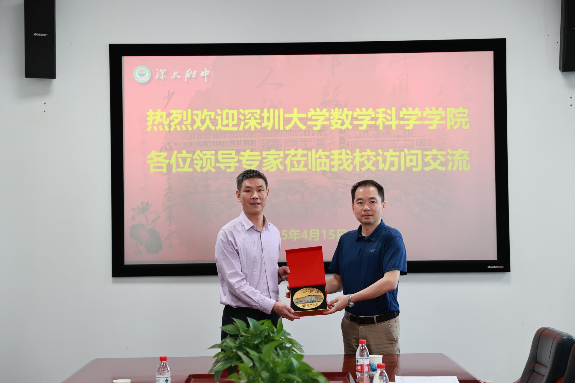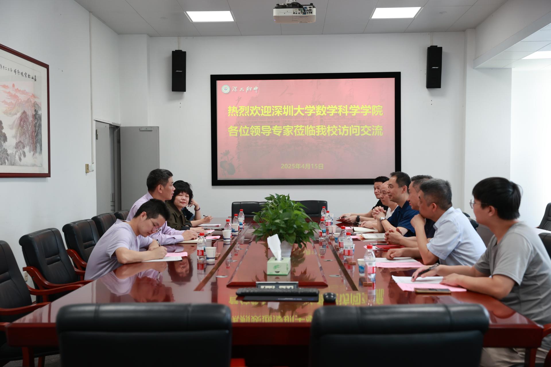 4月15日上午,深圳大学数学科学学院院长率队前往深圳大学附属中学开展参访活动。此次活动得到了深圳大学附属中学的高度重视和热情接待。双方就数学师范生的教育实习、就业合作等议题进行了深入交流。参与此次交流的有深圳大学附属中学副校长(主持工作)边海峰、副校长陈美英、数学教研组长高洁、宣传联络办主任吴晓,深圳大学数学科学学院院长以及党委副书记叶星、基础数学系主任孙宗良、应用数学系副教授刘强和就业工作辅导员田力帆等。
