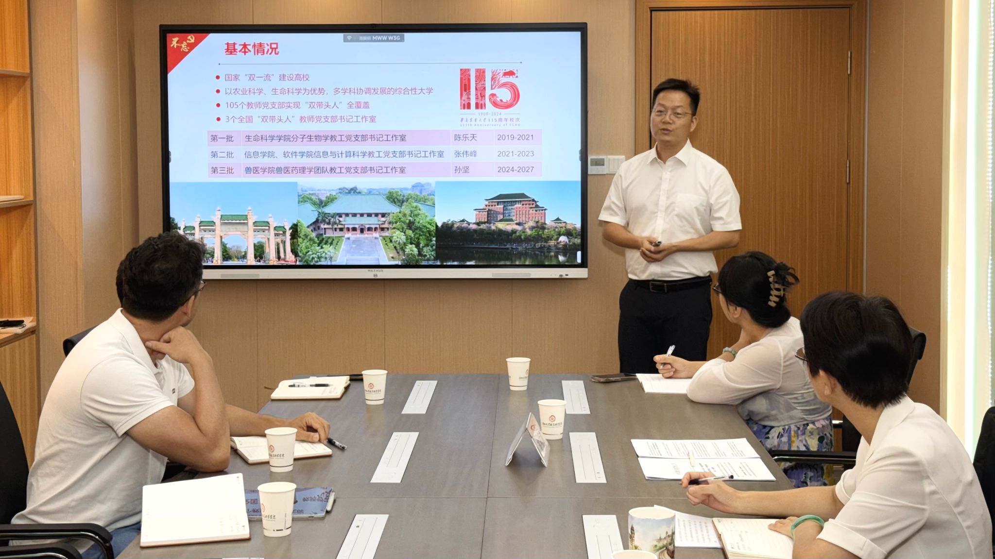 为深入推进基层党组织建设,提升党支部书记履职能力,9月26日下午,数学科学学院特邀教育部第二批“双带头人”教师党支部书记工作室负责人、华南农业大学数学与信息学院、软件学院张伟峰教授来院开展数学学科党建工作交流研讨会。学院党委书记王瑜、党委副书记叶星、副院长赵毅、全体党支部书记、党建组织员和党务秘书参加会议。