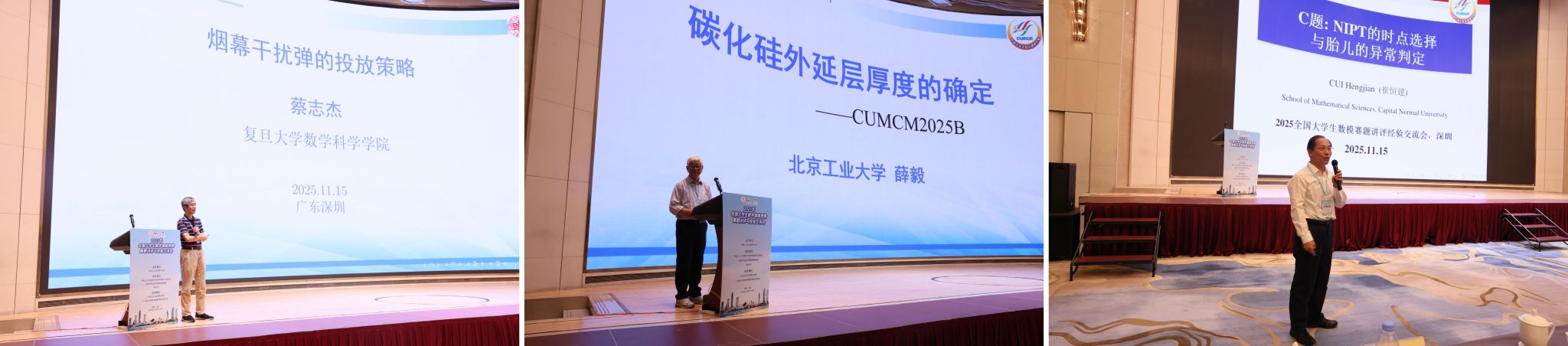 11月14日至16日,“2025年全国大学生数学建模竞赛赛题讲评与经验交流会”在深圳成功举行。此次会议由中国工业与应用数学学会(以下简称学会)主办,学会数学模型专业委员会、全国大学生数学建模竞赛组委会(以下简称全国组委会)和深圳大学共同承办,广东省工业与应用数学学会和广东省大学生数学建模竞赛组织委员会协办,吸引了来自全国800余名高校的数学建模一线教师参加会议。