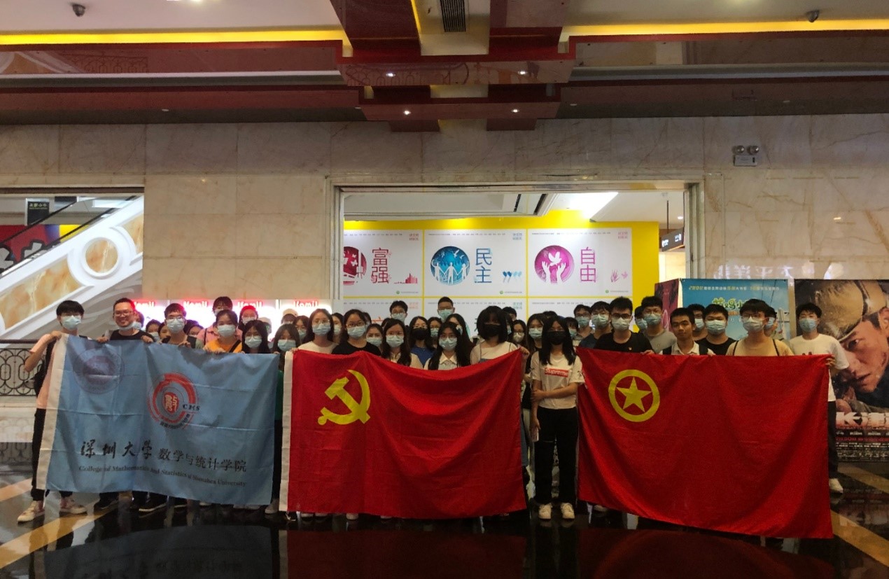2021年10月17日傍晚18:30,深圳大学数学与统计学院本科生第一、第二党支部于太平洋影城联合举办了《我和我的父辈》观影党日活动。影片开始前,全体合照留念。