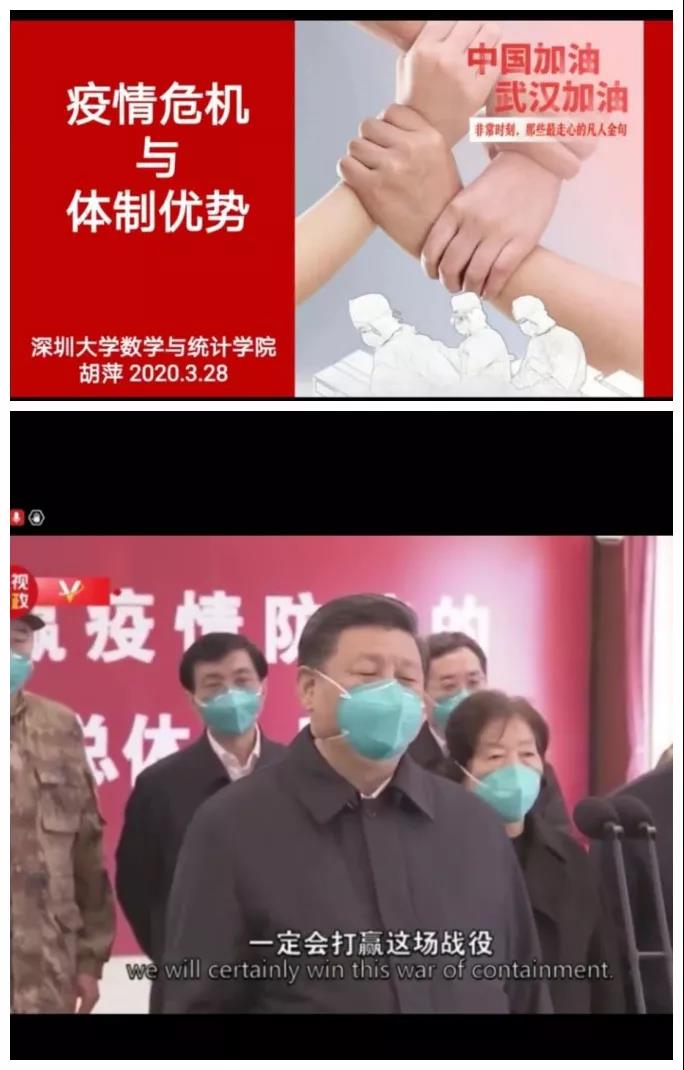 胡萍书记首先主讲“疫情危机与制度优势”专题党课,分别从“危机应对的全局把控”、“果断决策的政治勇气”、“难以复制的救治良方”、”民族精神的众志成城”、“全球抗疫的中国智慧”等方面展开视野与剖析。2020这次新冠肺炎疫情,传播速度之快、感染范围之广、防控难度之大,在世界公共卫生史上实属罕见。面对如此重大的突发公共卫生事件,一个国家采取什么样的应对策略,如何高效整合资源、如何灵活协调行动、如何迅速减少影响,是对国家治理水平与应急能力的极限检验。危机关头有目共睹,中国政府应对有力,在国家主席习近平亲自指挥亲自部署下,全民动员、联防联控,坚定信心、同舟共济,科学防治、精准施策,迅速采取的最全面、最严格、最彻底的防控举措,及时构建疾病传播防线,有效改变疫情发展轨迹,“新冠”阻击战取得明显成效。胡书记还通过一系列短视频,与同学们一起回顾两个月来惊心动魄的抗疫进程。恐慌、泪目、压痕,寂静、拐点、解封。从年三十的白衣勇士驰援武汉,体现了令百姓感叹不已的中国保障;从火神山的八方合力十日建成,展示了令西方惊叹不已的中国速度;从柱状图的确诊缩零疫情趋稳,彰显了令世卫赞叹不已的中国方案。目前国际社会普遍认为,中国采取的坚决有力的防控措施,处处展现的出色的领导能力、应对能力、组织动员能力、贯彻执行能力,为世界防疫树立了典范。胡书记强调,在新冠疫情面前,充分见证了中国政府的坚定意志,见证了中国人民的团结力量,见证了中国制度的强大优势。胡书记提醒同学们,年轻人在和平环境中顺利成长,难得群体直面危机状况,而经历恐惧,才更加坚强;经历生死,才更加勇敢;经历曲折,才更加奋斗。同学们要“感谢”寒假宅家之特别经历,将有助大家深刻感悟与身心历练。当前是“内防反弹、外防输入”阶段,仍然要警惕不轻视。疫情阻击战同时须兼顾舆论战心理战。最后,引用习近平总书记致信九零后援鄂医疗队的嘱咐,希望青马同学们不惧风雨、砥砺意志、勇挑重担、拼搏奋战,让青春在党和国家最需要的地方绽放绚丽光彩。接着学院团委书记肖晓君老师向青马学员们分析目前全球疫情情况。面对全球传染性疾病,所拼的是综合国力和国家制度的优越性,长期以来西方国家沉浸于自身的优越感难以自拔,正由于这些挥之不去的傲慢、偏见和治理的低效,以至于如今正面临着难以控制的感染扩散局面,反观我国有坚强有力的党的领导和政府强大的组织力执行力,上下同心一致应战,疫情防控卓有成效。从1月20日开始,中央政治局连续七次召开会议强力推进疫情防控,党和国家领导人多次亲临一线调研指导、慰问走访,中央指导组坐镇武汉指挥调度,多个职能部门联防联控。从千万级城市果断封城,到19省份对口支援湖北16市州;从各地相继进入最高等级响应,到科学防控坚持“四早”“四集中”;从“中央怎么说,百姓就怎么做”,到各项作战指令“一键抵”……我国治理体系和治理能力的优势,在这场同时间赛跑、与病毒较量的殊死搏斗中得到了淋漓尽致的体现。肖晓君老师强调,在这场突如其来的大考中,中国经受住了考验,中国人民更加坚定打赢这场疫情阻击战的决心,这种信心和底气来自我们对中国特色社会主义的“四个自信”——道路自信、理论自信、制度自信、文化自信。随后青马班学员开展讨论交流,通过线上视频会议系统畅所欲言,大家纷纷分享自己对疫情当下我国凸显出的制度优势、党领导下的人民力量的心得体会。其中,2017级的郑康娜同学介绍了自己在社区防疫抗疫志愿者工作中的感悟,作为一名预备党员,其以身作则与勇敢无畏,获得与会师生的一致好评。最后,肖晓君老师再次鼓励青马学员们要在保证自身安全防护的情况下多参与志愿活动、宣传和发扬时代精神,要坚定抗疫胜利的意志与信念。肖老师还表示,希望青马学员能够继续发出正确的声音、做出正面的行为和榜样,发挥好青马阵地的引导力,让大家在理想信念、价值理念、道德观念上紧密联系、团结在一起,让正能力更加强劲,让主旋律更加高昂。至此,数院青马营通过线上线下、思政党课、理论学习、专题研讨等不同方式,历时三个月,已完成全部的理论学习内容共计18学时。数院青马班将继续不忘初心,砥砺前行,坚守信念,勇攀高峰,发扬好青马精神和榜样作用,为实现中国梦而努力奋斗!
