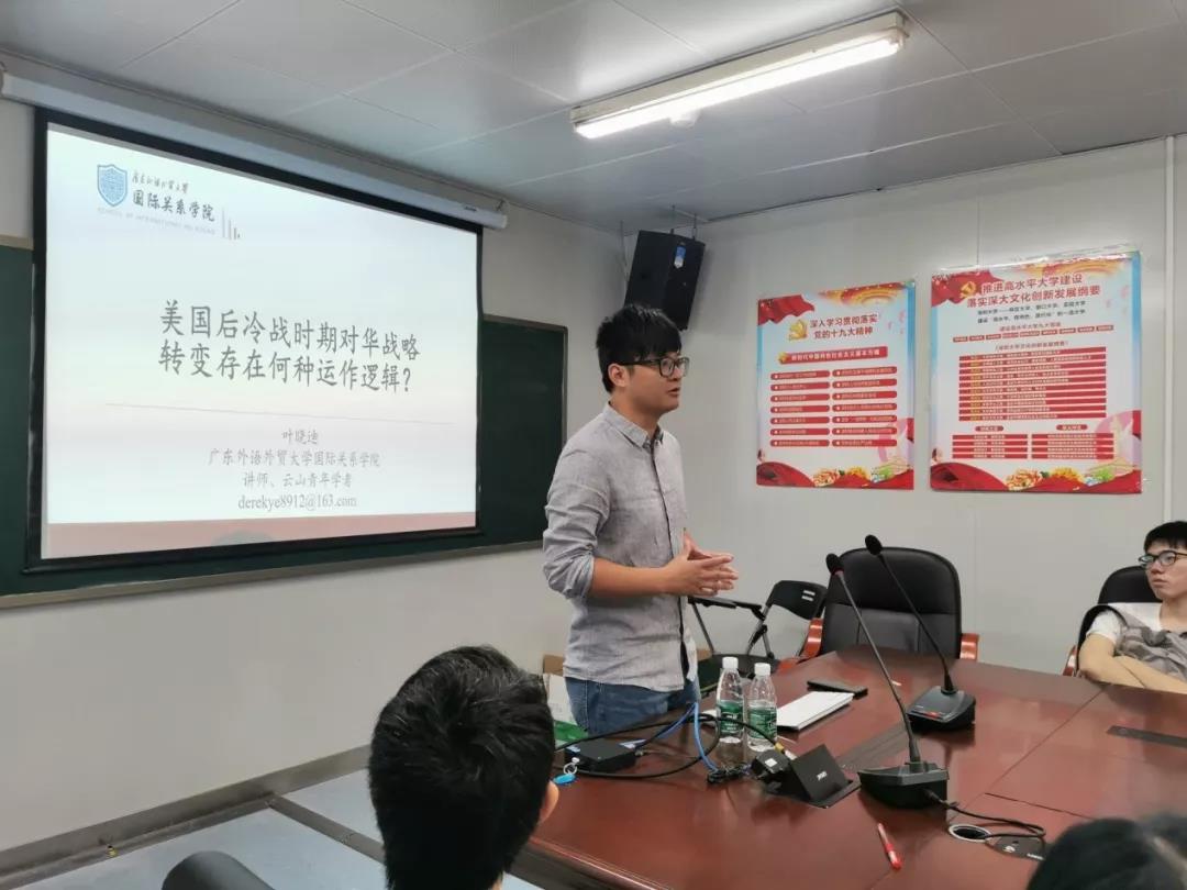 10月21日晚7点,数学与统计学院于科技楼514举行《美国后冷战时期对华战略转变存在何种运作逻辑》讲座,主讲人为广东外语外贸大学国际关系学院,叶晓迪助理教授。