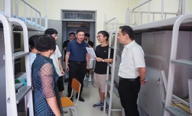 在走访过程中,学院领导与新生亲切交流,询问他们的入校和报到情况,耐心询问是否适应新环境以及对未来的期望。学院领导十分关心宿舍环境与公共区域,鼓励同学们要利用好现有的配套资源,认真学习,同时保持好公共区域的卫生整洁,既要把学习搞好,也要把校园生活过好。王瑜书记针对部分宿舍设施老化缺损等问题,提出了辅导员及学生干部要多加留意新生宿舍缺损情况,做到及时反馈、及时上报。王瑜书记还表示,有任何学习生活上的问题都可以和班导或者辅导员多沟通,希望同学们能够尽快适应大学生活。院长亲切地问候了宿舍里每一位同学,并与学生家长握手进行友好地交谈。在交谈中,院长给予了同学们很多大学生活的建议,并耐心地解答学生和家长提出的问题。院长表示再次热烈欢迎新生的到来,感谢新生及其家长选择数学科学学院,并祝福他们能够拥有美好的大学生活。