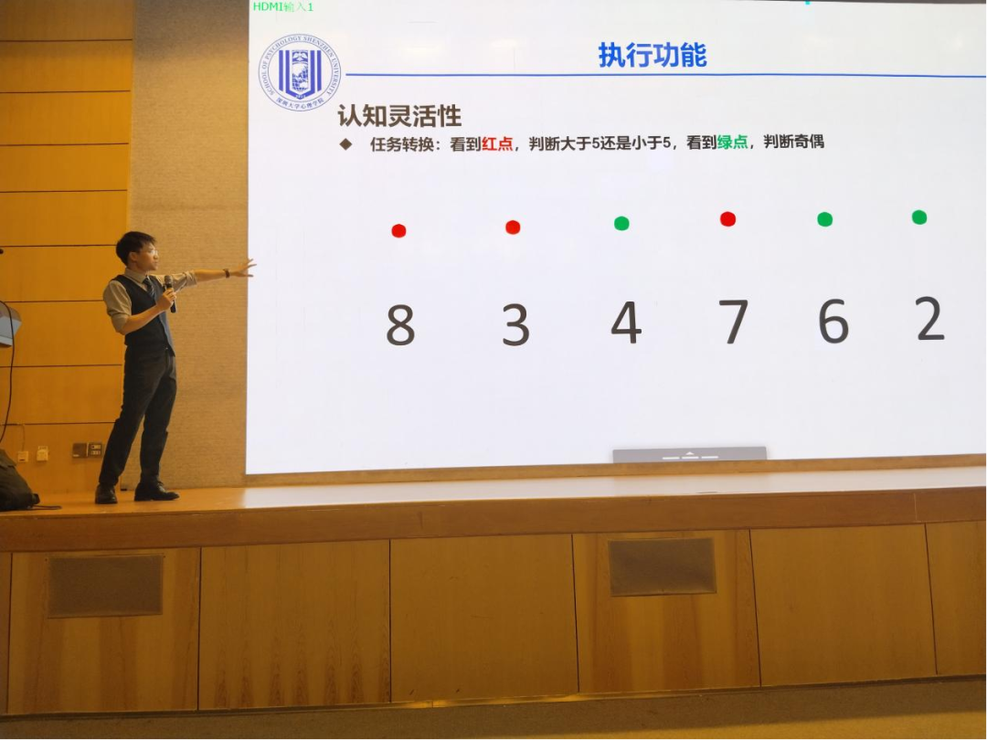 第二部分是江老师研究的课题之一——“抑制控制”。在这一部分,江老师与同学们进行了许多涉及抑制控制的简单互动。他举了许多例子,其中一个例子是关于在做试卷时同学们常常犹豫是否要改变答案。江老师指出,经过调查发现,仅有25%的情况下是将原来正确的答案改成错误的。这一情景帮助同学们深入理解抑制控制的核心概念,以及如何抑制这类直觉。通过这样的学习,同学们能够更好地掌握自己的学习过程,提高自控能力。