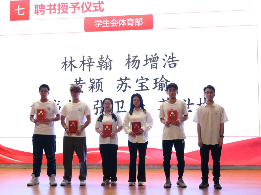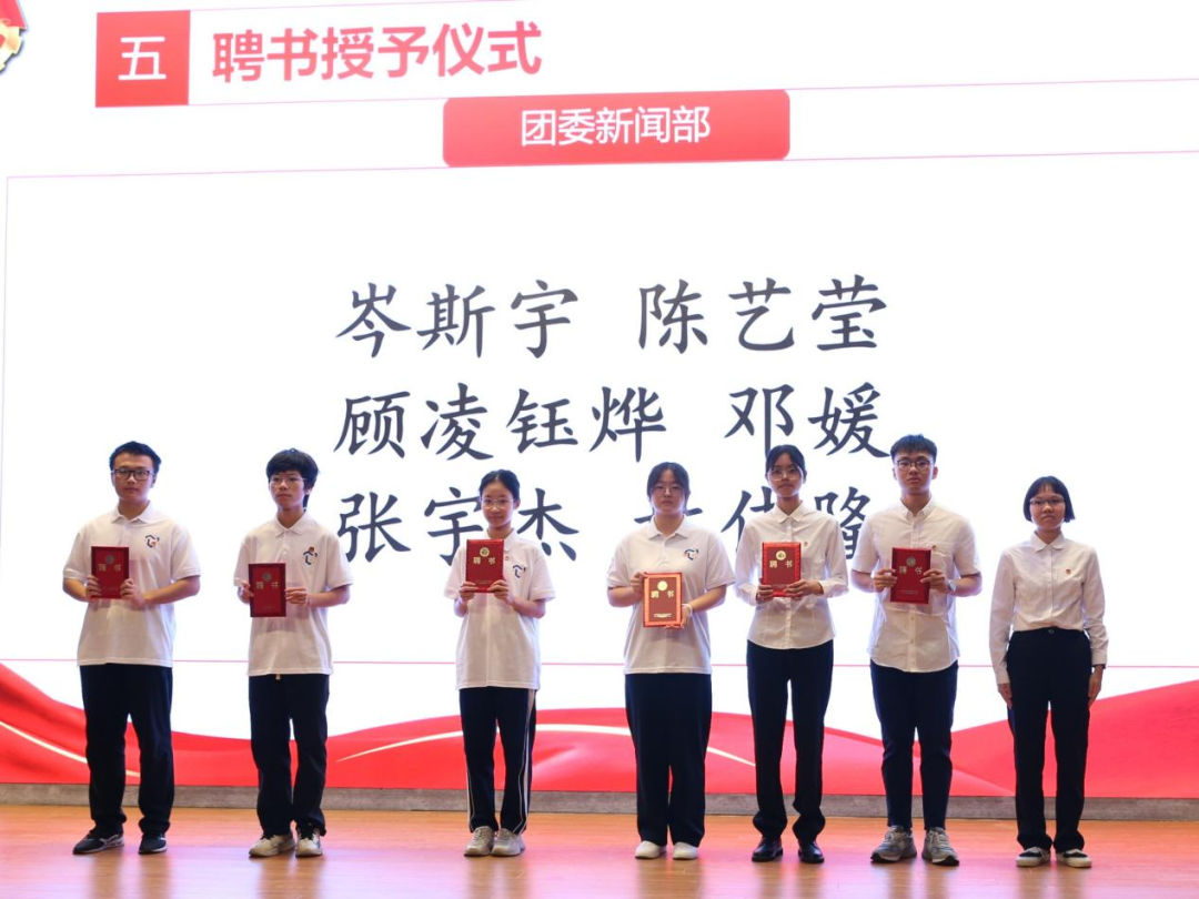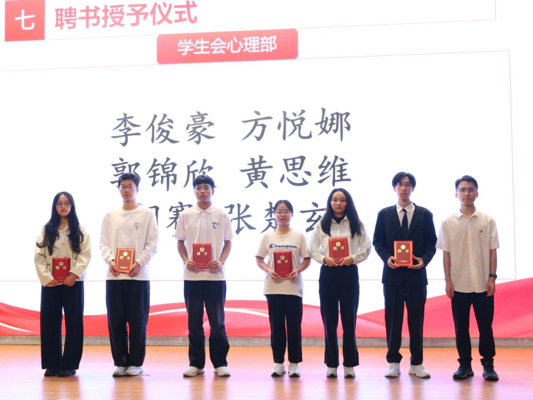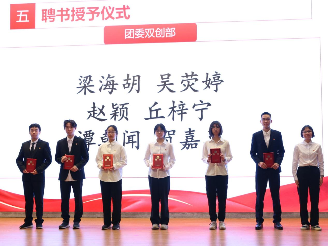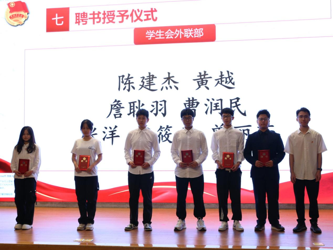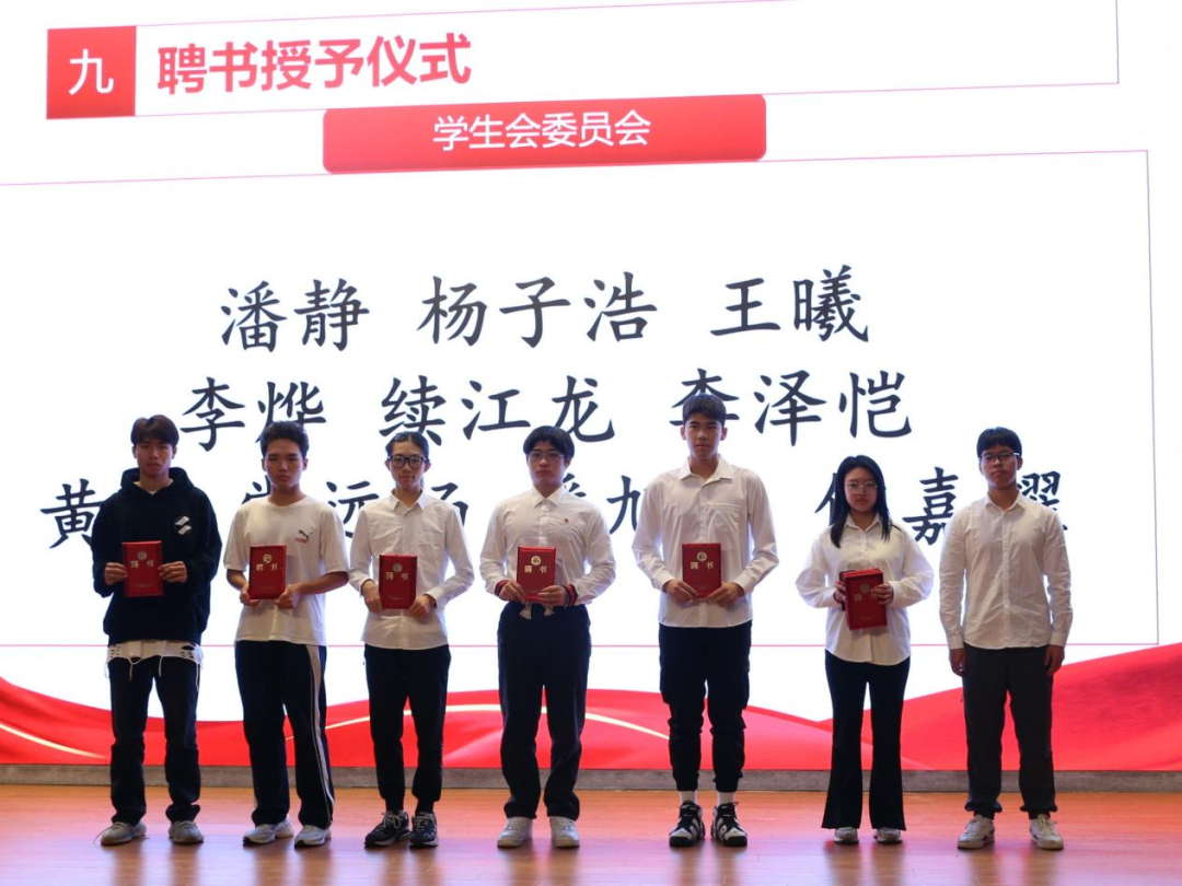 随后,他为学生会委员会的成员颁发聘书并合影留念。