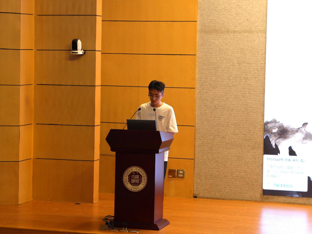在此之后,学生会委员会召集人马宇浩同学上台对学生会委员会成员的工作进行汇报,他总结了学生会委员会近期的工作和成功的经验,同时也提出不足之处,分析了问题成因与解决方案,并希望学生会委员会的成员互帮互助,共同进步,有问题积极反馈,共同打造数院更美好的明天。
