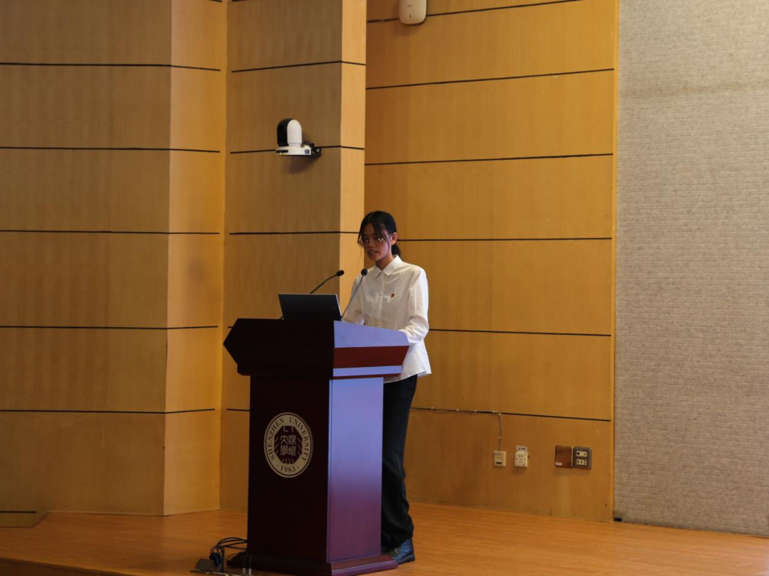 接下来,由团委学生副书记肖璇上台发表对新一年团委工作的讲话,她总结了近期的工作成果与收获,同时也指出团学的不足与缺点,希望团学成员继续努力,互进互促,共同创造美好的未来。