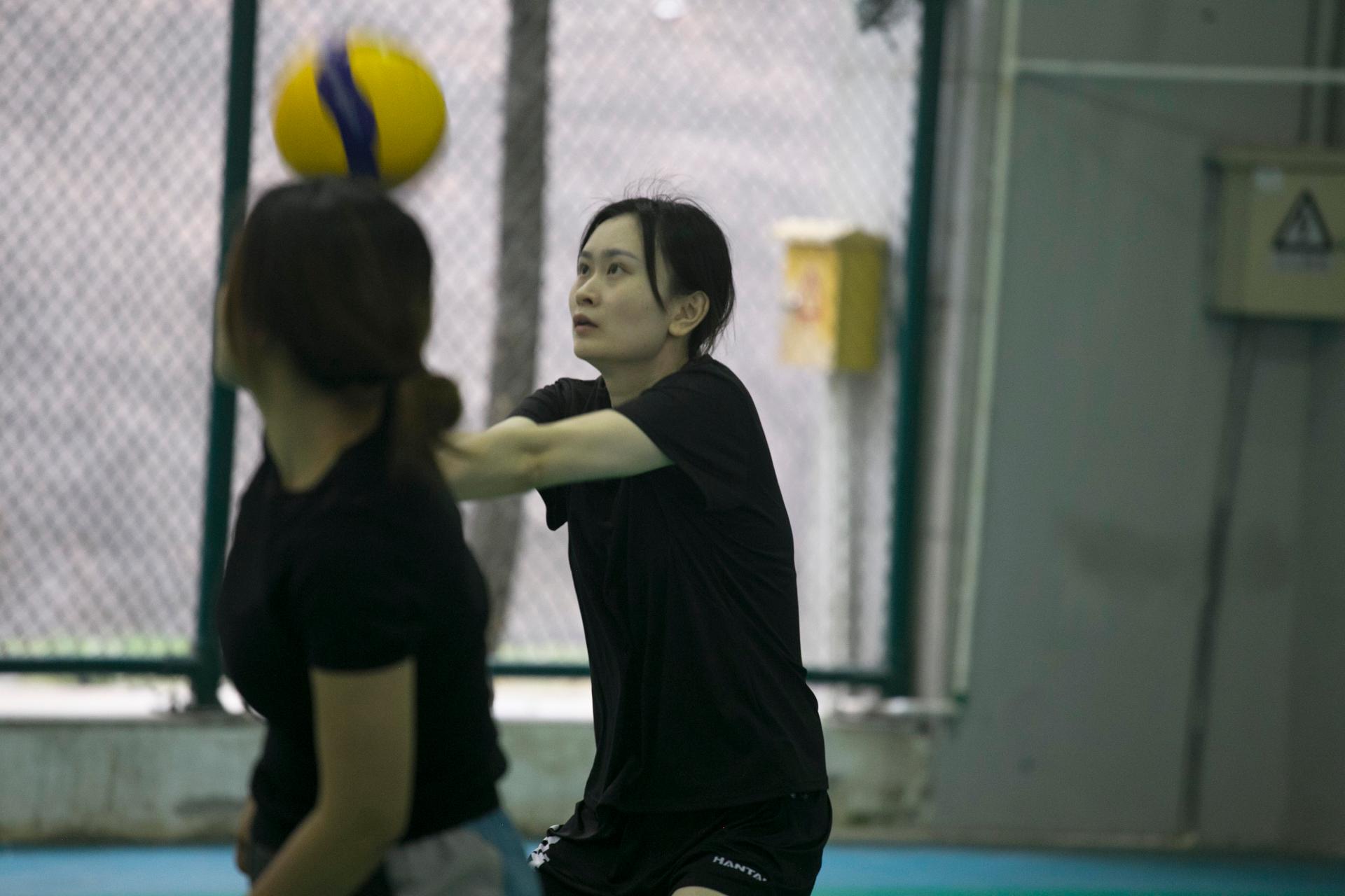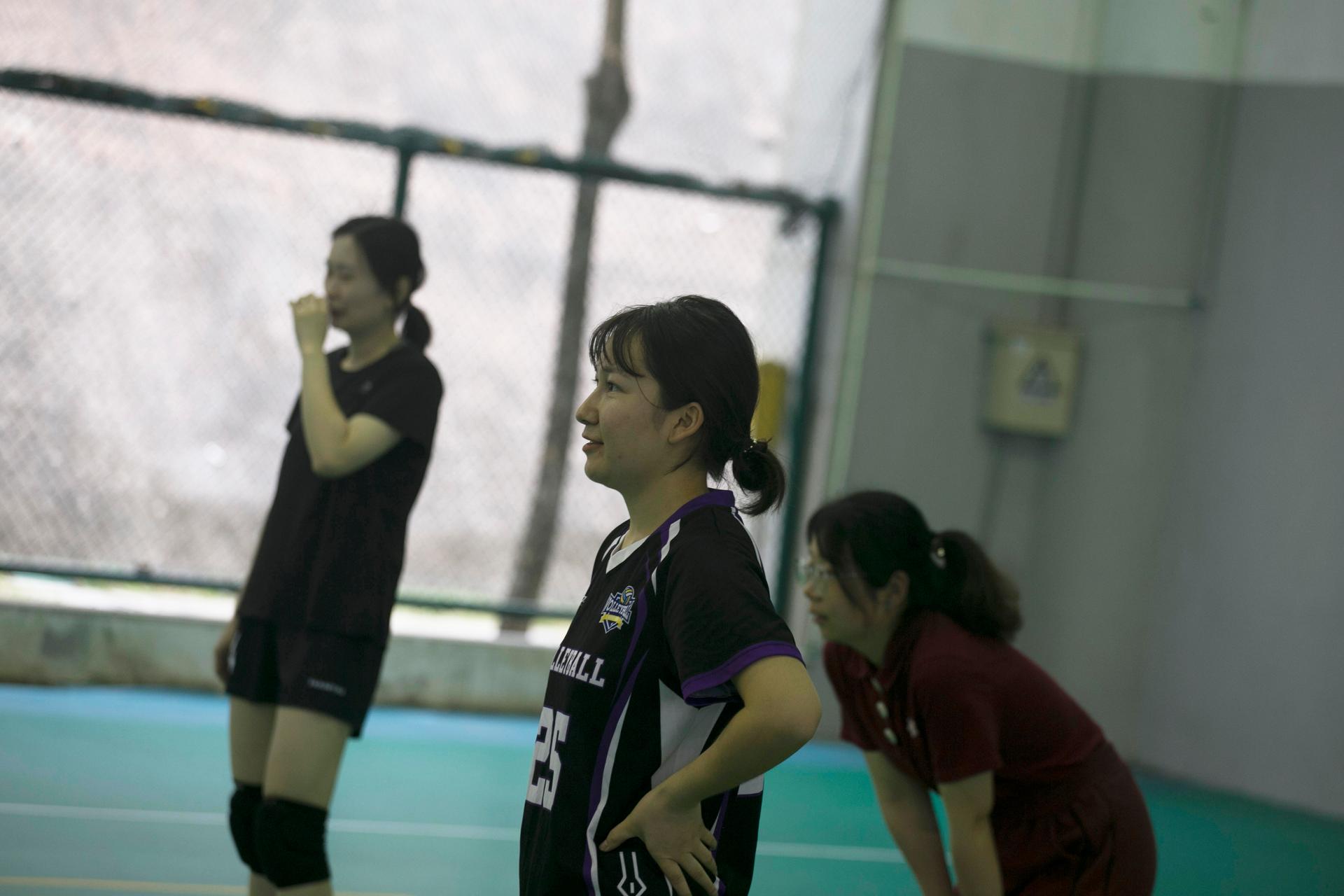 沈依菲:认识了更多师姐,然后我们打排球也很快乐。