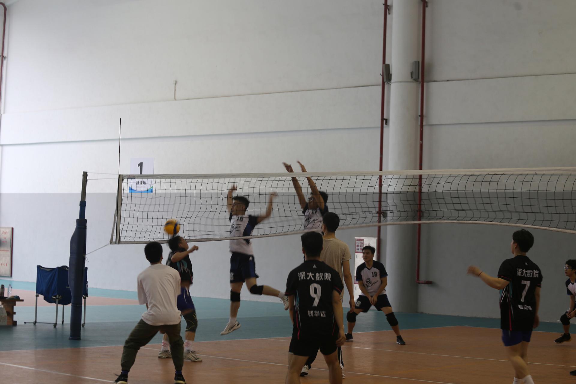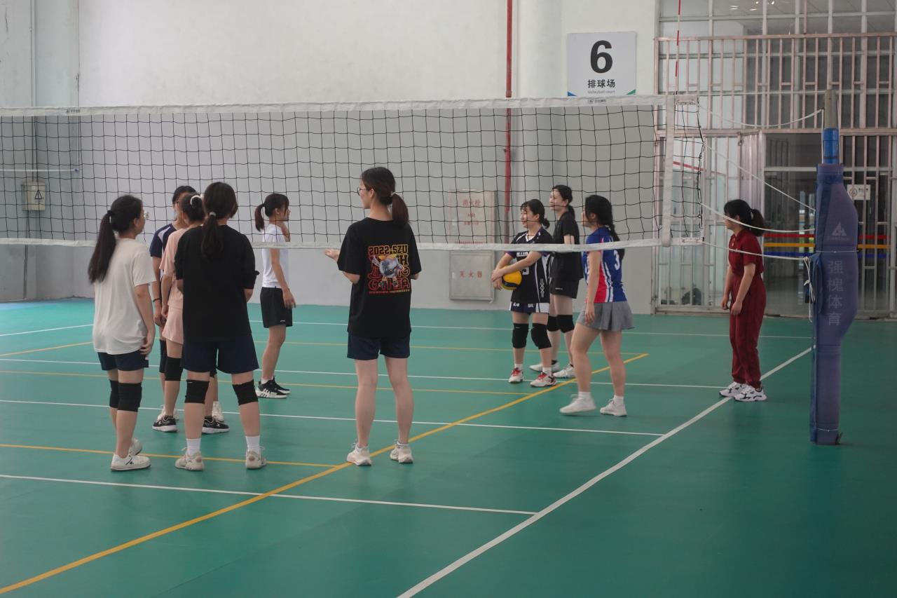 女排友谊赛。令观众印象深刻的是其中一个回合,校友队攻势猛烈,处处扣杀,仿佛对那一回合势在必得,但院排球队依靠队员间默契,有惊无险化解了校友队的一波又一波攻势。