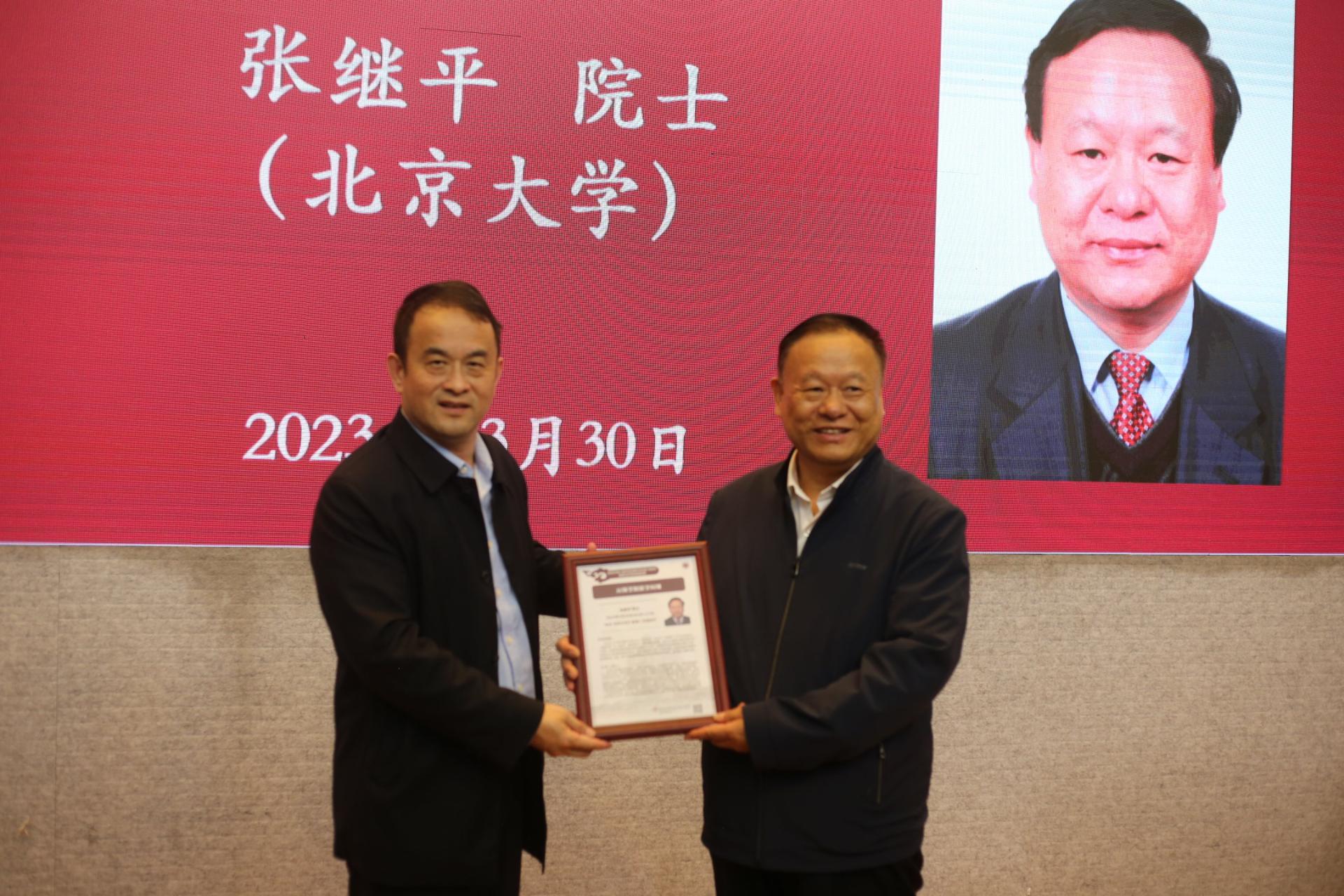 本次讲座由深圳大学数学与统计学院院长主持。开讲前,周辉副校长为张继平院士颁授此次讲座纪念牌。