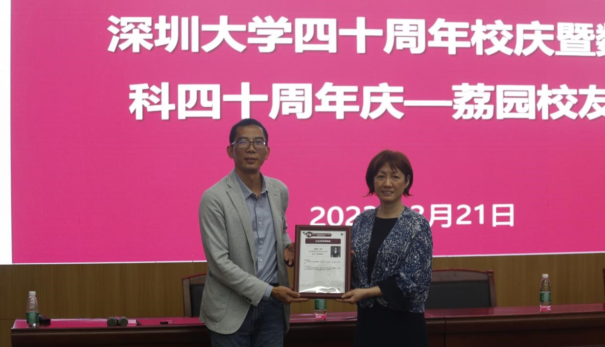 历时一个多小时的讲座后,数学与统计学院党委副书记张国强为陈昳茹校友颁授此次讲座纪念牌,勉励同学们学习陈昳茹校友勇于拼搏、热心公益的优秀品质,磨炼自立、自律、自信,脚踏实地的深大品格,做让生活变得更有趣的自己。