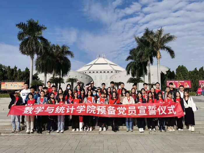 11月29日,数学与统计学院前往东莞虎门开展本科生党日活动暨预备党员入党宣誓仪式,参与本次活动的有本科生第一党支部书记张梓佳老师、团委书记肖晓君老师以及本科生预备党员、2020-1期青马营学员共计50余人。