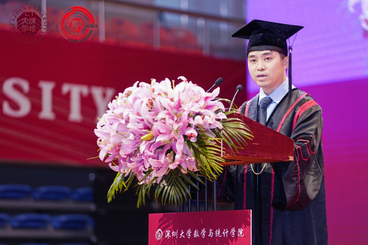 院长在题为“让平凡之路走得不平凡”的讲话中对同学们的毕业表示了最热烈的祝贺和最深情的祝福。他表示,虽然我们生于平凡,然而生活中不光有那些耀眼的光彩夺目、激动人心,更多的是那些朴素的、琐碎的、平淡的、甚至煎熬的,接受平凡,更是内心的从容淡定、笃定致远。毕业对同学们而言是一个新的起点,更是一个新的机会,希望同学们能展现出深大数学人的卓越品质和激情,能够为家庭的幸福、家乡的建设和祖国的繁荣富强贡献出自己的力量和才华,坚信平凡的微光终将聚而成炬,累土不辍、丘山崇成。