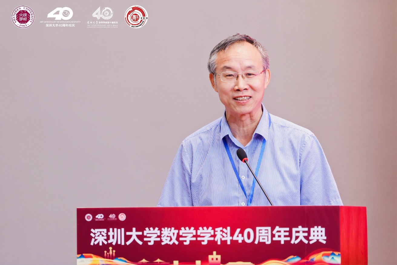 陈大岳教授代表兄弟学院向深圳大学数学学科40周年表达了祝贺,他提到,深圳大学数学学科在较短的时间内形成了从学士、硕士到博士的完整人才培养体系,培养了大批数学拔尖人才。希望未来两院互相支持,共同努力,为把我国早日建设成为数学强国而不懈奋斗。