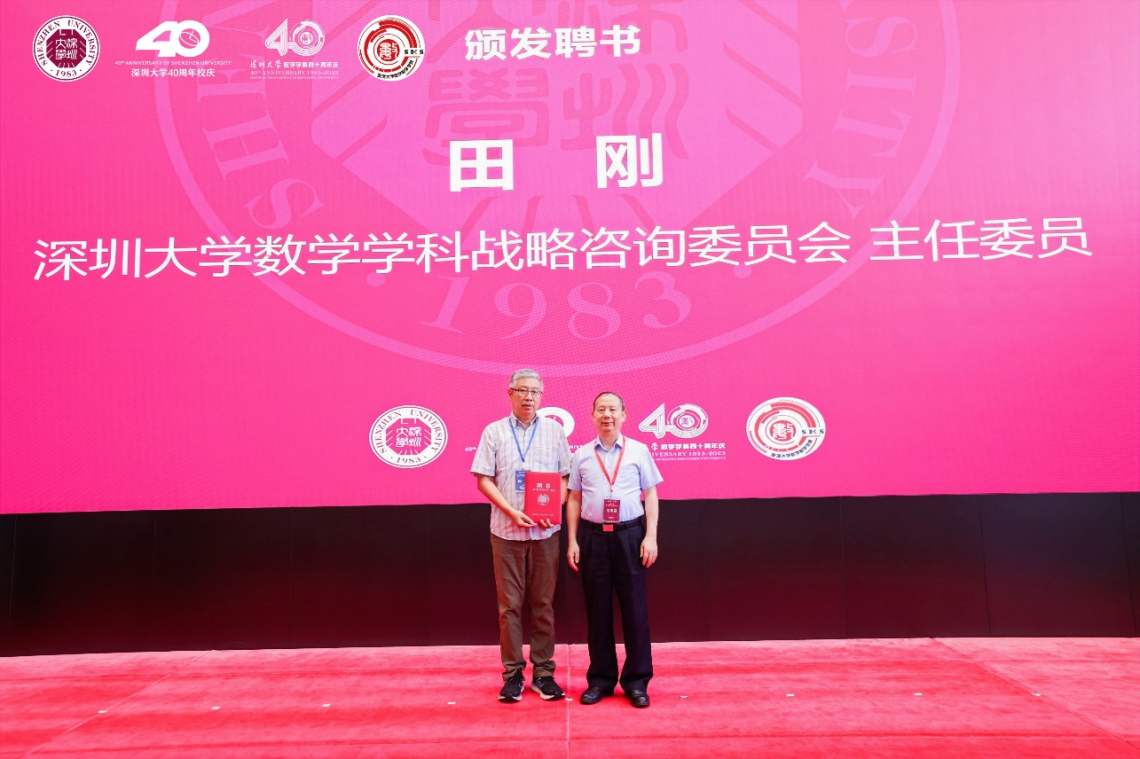 2023年9月24日上午,深圳大学数学学科40周年庆典在深圳大学粤海校区校友广场二楼会议室隆重举行。出席本次庆典的嘉宾有中国科学院院士、中国数学会理事长、北京国际数学研究中心主任田刚,中国科学院院士、国际工业与应用数学联合会主席、全国政协常委、中国科协副主席袁亚湘(线上参加),中国科学院院士、西安交通大学教授徐宗本,中国科学院院士、中国科学院数学与系统科学研究院研究员周向宇,中国科学院院士、首都师范大学校长方复全,中国科学院院士、北京师范大学-香港浸会大学联合国际学院(UIC)校长汤涛,中国科学院院士、中俄数学中心主任、北京大学教授张继平,中国科学院院士、中国科学院数学与系统科学研究院副院长(法人代表)张平,中国科学院院士、中国科学院数学与系统科学研究院研究员、浙江大学教授孙斌勇,全国政协港澳区委员、陈省身数学奖资助人、香港亿利达工业集团董事长刘纪明先生等专家学者,以及中国科学院院士、深圳大学校长毛军发,深圳大学副校长徐晨,深圳大学副校长李永华,深圳大学相关基层单位领导,数学科学学院在职与退休教师代表、校友代表。庆典由深圳大学副校长徐晨主持。