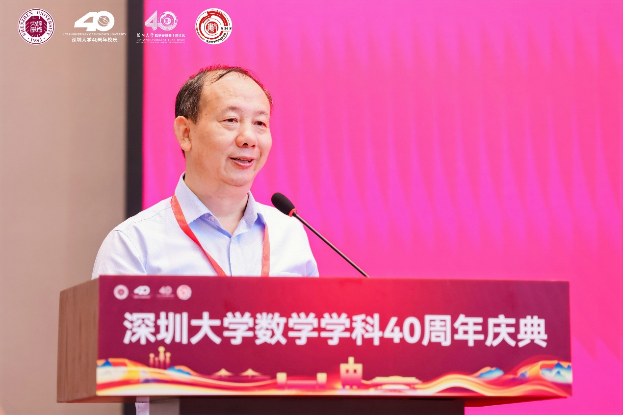 田刚院士代表中国数学会发表致辞。他指出,40年来,深圳大学数学学科取得了令人瞩目的成就。在快速发展的同时,深圳大学数学科学学院与中国数学会保持着紧密的合作关系,在国内外树立了良好的学术声誉。他代表中国数学会祝愿深圳大学数学科学学院在未来的发展道路上取得更加辉煌的成就,为推动中国数学事业的发展做出更大的贡献。