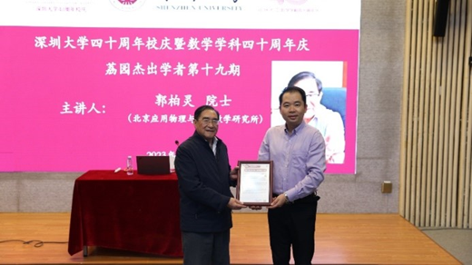 2023年12月3日上午10:30,中国科学院院士、北京应用物理与计算数学研究所研究员郭柏灵受邀来到深圳大学汇星楼三号报告厅,作题为“发扬两弹一星精神,促进我国高科技发展”的学术报告,数学科学学院近百名师生参加本次学术报告。该报告为深圳大学四十周年校庆暨数学学科四十周年庆学术活动——荔园杰出学者第十九期,由数学科学学院院长主持。