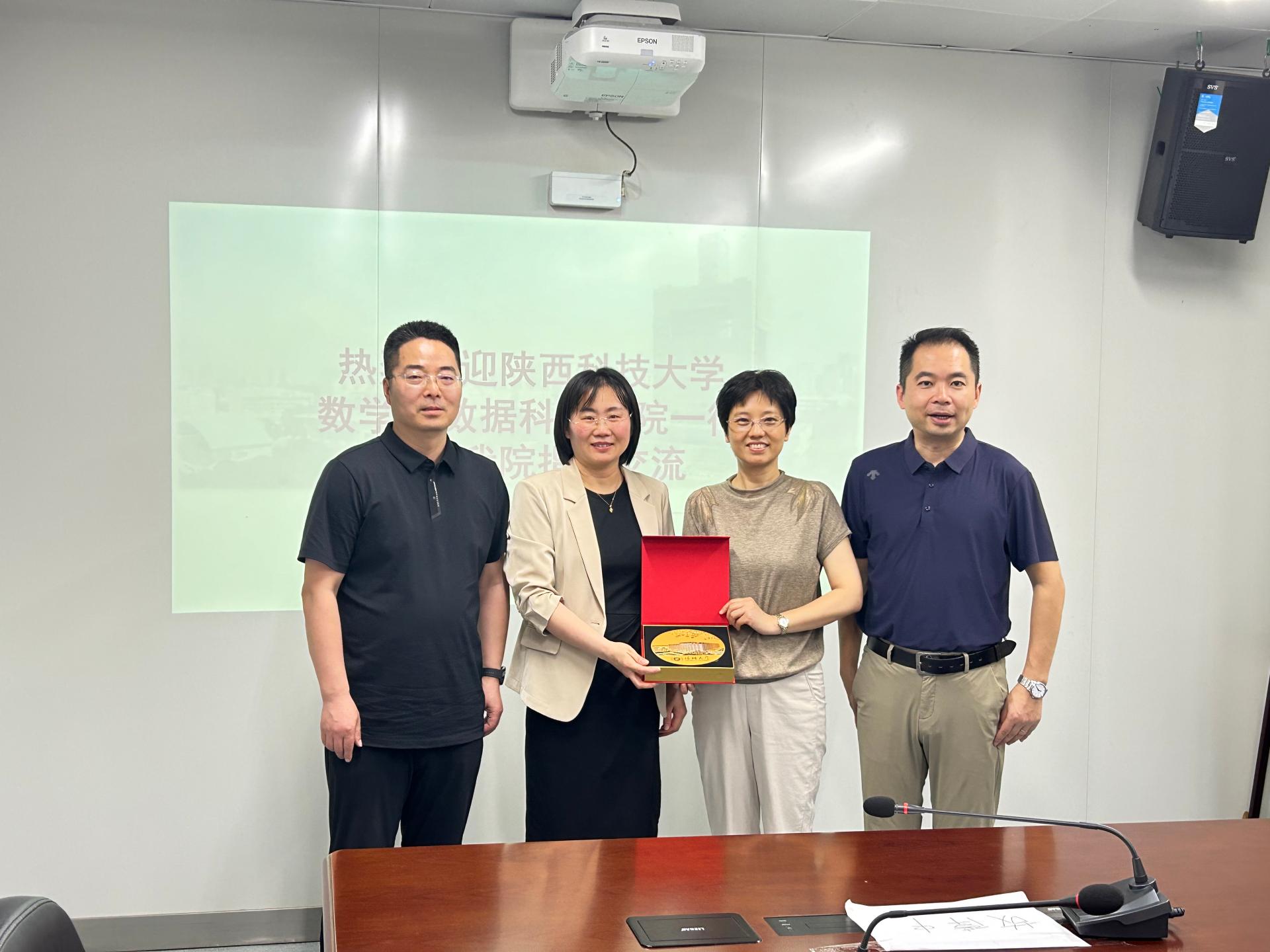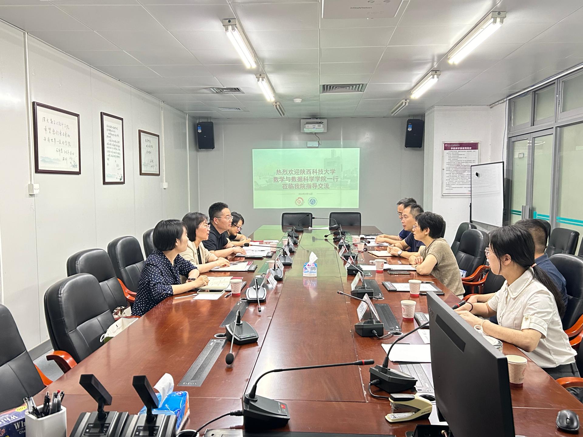 会上,王瑜书记代表我院对陕西科技大学数学与数据科学学院一行的到来表示热烈欢迎,并介绍了我院党支部建设、党建引领学院事业发展、党建“双创”等工作的开展情况,分享了我院在规范党组织领导与运行机制、全面落实基层党建主体责任、促进党建与业务融合方面做出的努力及取得的成果。郭改慧书记对陕西科技大学的办学历程以及数学与数据科学学院的党建情况进行了介绍,分享了学院在硕士学位点建设、师资队伍建设、党建工作等方面的经验。李剑院长及与会人员就学科建设、高水平人才队伍建设、党建与业务融合等重要议题展开了深入交流和探讨,共同探讨了未来在这些方面的合作与发展路径。双方表示希望加强交流、相互学习,共同推动数学学科发展,为培养更多优秀人才和服务社会做出更大贡献。