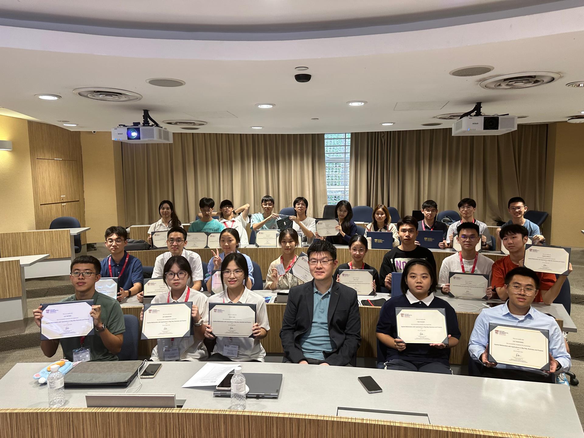 为促进国际化人才培养,拓宽我院优秀本科生在数学学科领域的国际化视野,我院23位优秀本科同学于2024年8月18-24日前往新加坡南洋理工大学参加了为期7天的访学项目。该访学团由学院党委叶星副书记、辅导员田力帆老师带队。