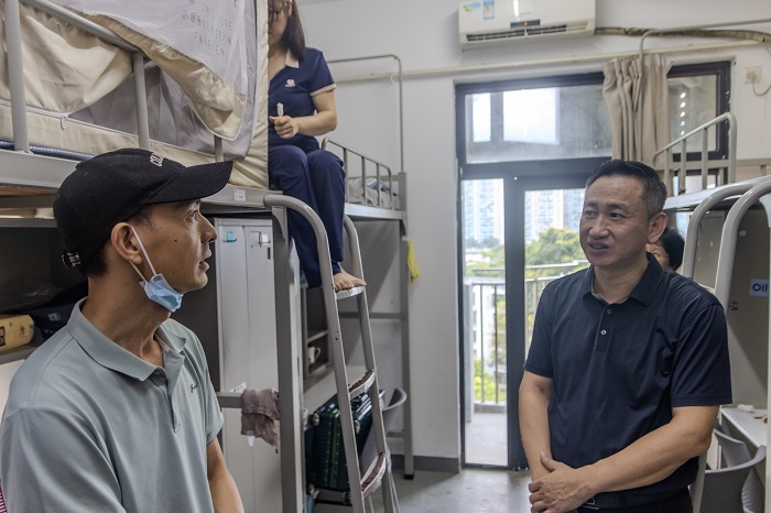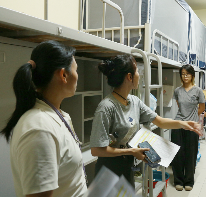 学院党委叶星副书记和辅导员老师们也来到迎新现场,与新生展开面对面的亲切交流,向他们传达了热烈的欢迎和深切的关怀。在位于汇星楼一楼的新生接待区,叶星副书记充分肯定了志愿者们的辛勤工作和无私奉献,还亲切地与新生进行了交谈,细心询问他们的报到进展以及他们对于新环境的感受。随后,叶副书记和辅导员老师们深入学生宿舍,与新生及其家长进行了交流,他向新生简要介绍了学院的基本情况和特色,帮助新生对学院有了初步的了解,叶副书记和辅导员老师们细致了解了新生的状况和学习、生活需求,积极为他们解决实际困难,提供必要的帮助和支持。叶副书记还特别关注新生们的心理健康状态,鼓励他们在遇到任何问题时都能主动寻求老师同学的帮助与指导。