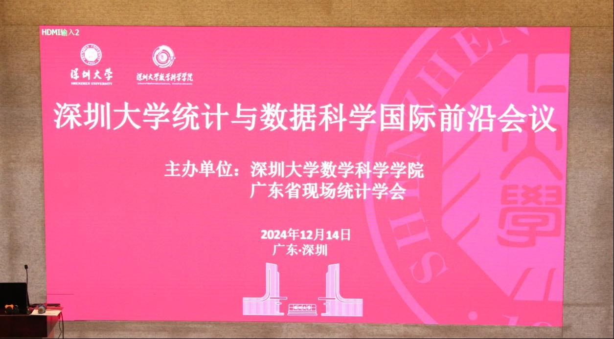 2024年12月14日,深圳大学数学科学学院与广东省现场统计学会联合主办的“深圳大学2024年统计与数据科学国际前沿会议”在深圳大学粤海校区成功举办。本次会议汇聚了来自广东省,香港,澳门的统计学者、研究生及相关领域的专家学者,共同探讨统计与数据科学的最新研究动态和前沿信息。