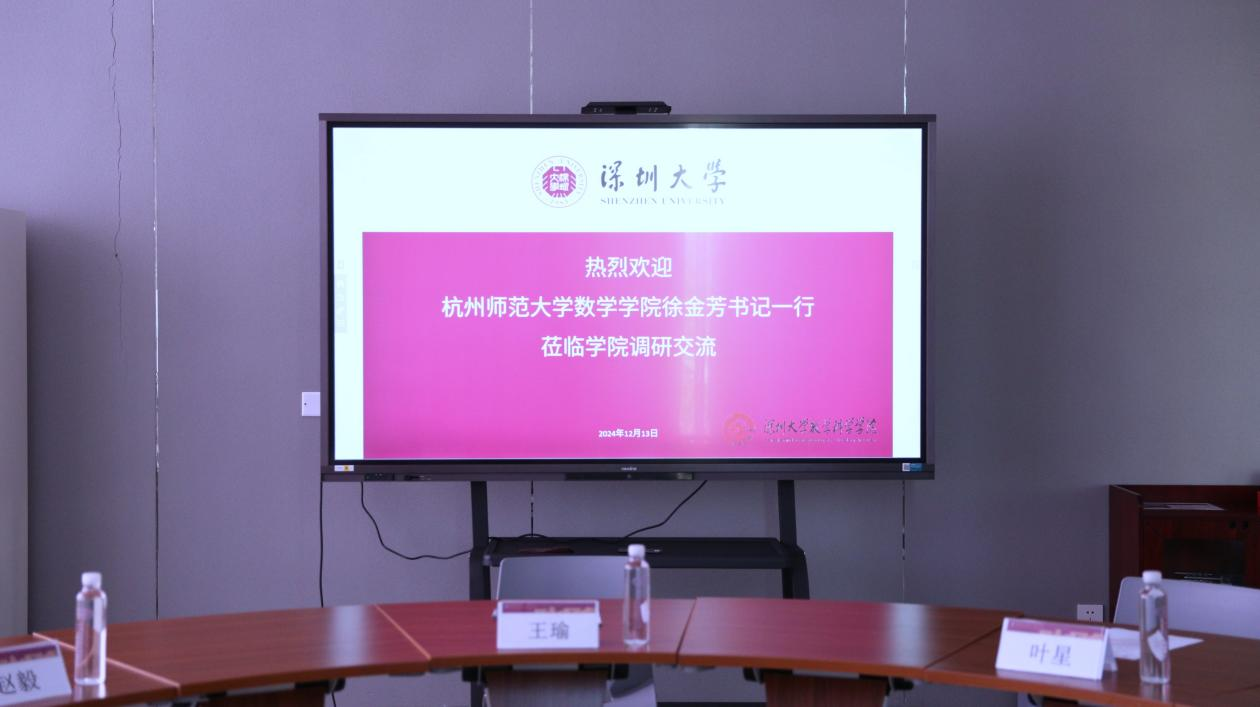 12月13日下午,杭州师范大学数学学院党委书记、副院长徐金芳,党委副书记李庆龙,院长助理孙庆有,数据与计算科学系主任曹健一行四人来访我院。我院党委书记王瑜,党委副书记叶星,副院长赵毅,副教授张爱林,辅导员田力帆参加了此次交流会。