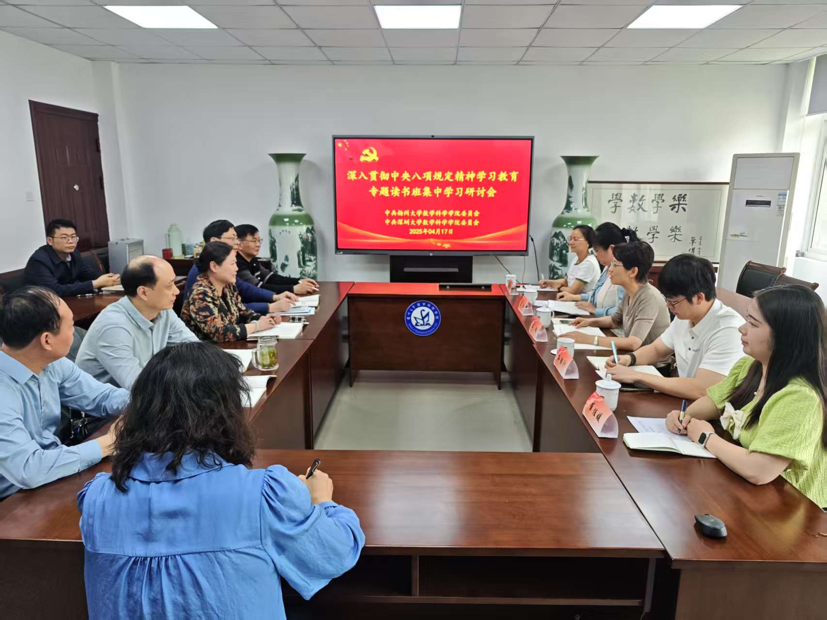 随后,双方开展深入贯彻中央八项规定精神学习教育联学研讨会。扬州大学数学科学学院党委书记郭丽领学“第一议题”:第8期《求是》杂志发表的习近平总书记的重要文章《加快建设文化强国》,我院党委书记王瑜领学《习近平关于加强党的作风建设论述摘编》第三专题。参会人员围绕“作风问题核心是党同人民群众的关系问题”进行联学研讨发言。