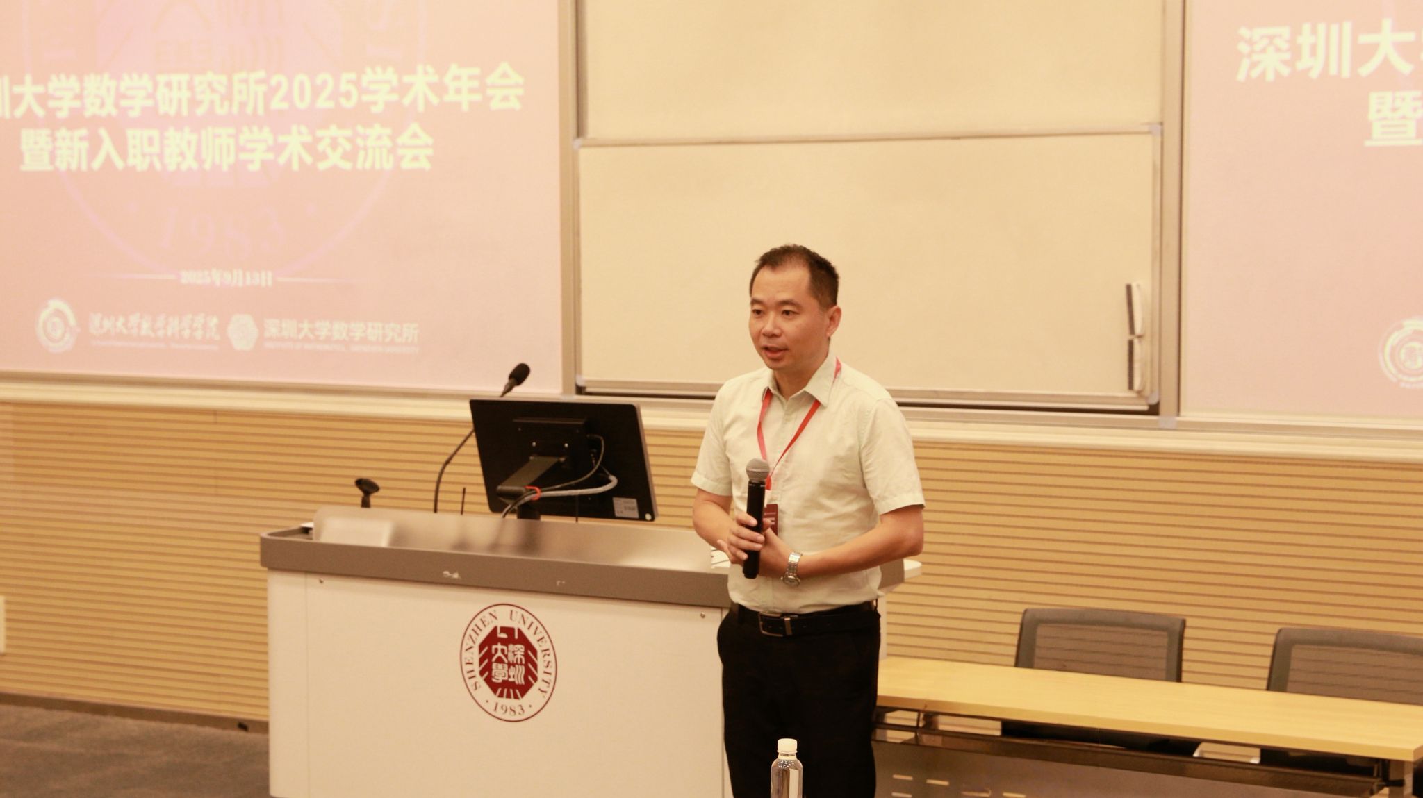会议最后,数学科学学院院长作总结发言,宣告本次深圳大学数学研究所年会暨新入职教师学术交流会圆满落幕。院长指出,感谢参会专家提出的宝贵指导意见,为新入职的老师们开展研究工作提供了重要参考。同时欢迎大家推荐优秀人才加入深圳大学,持续壮大学院的人才队伍,也期待学院新老教师们持续深化交流互动、加强经验分享,以携手奋进的姿态产出更多高质量科研成果,为数学研究所和学院学科建设注入更强劲的活力。