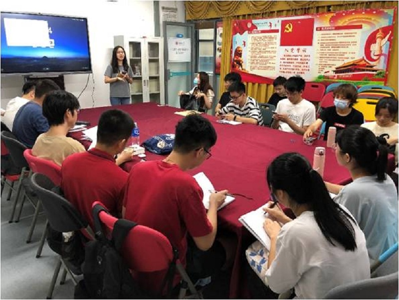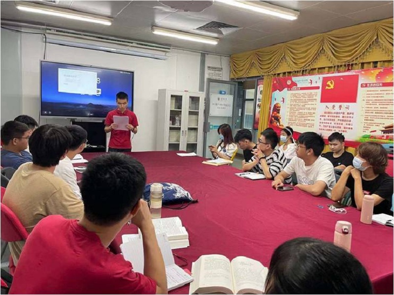 我院本科生第二党支部于9月13日下午在汇星楼5楼召开2021年9月支委会议,支部书记肖晓君老师,支部委员谢志鹏、董怡君、邹璇、黎天乐参会。会议第一议程学习,组织学习《论党的宣传思想工作》,深入学习贯彻市第七次党代会精神。随后,经支委决定,讨论了新一期党员发展情况,下半年工作重点整顿入党不规范流程,确保发展党员的工作顺利完成。