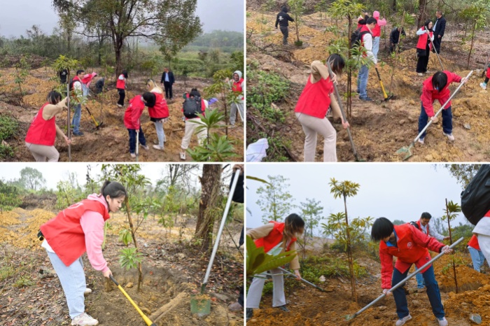 在春意盎然、万物复苏的季节,深圳大学数学科学学院党委、团委积极响应国家号召,投身于“百千万工程”、“双百行动”和“绿美广东”的劳动实践中。2024年3月16日,学院副院长、本科生第二党支部书记赵毅、学院团委书记肖晓君、团委副书记孙毅翀带领十余位青年党员及团学骨干前往汕尾海丰县海城镇温厝村开展“绿美广东,青年先行”党建带团建主题植树活动,师生们以实际行动绘就了明媚的绿美乡村新画卷。