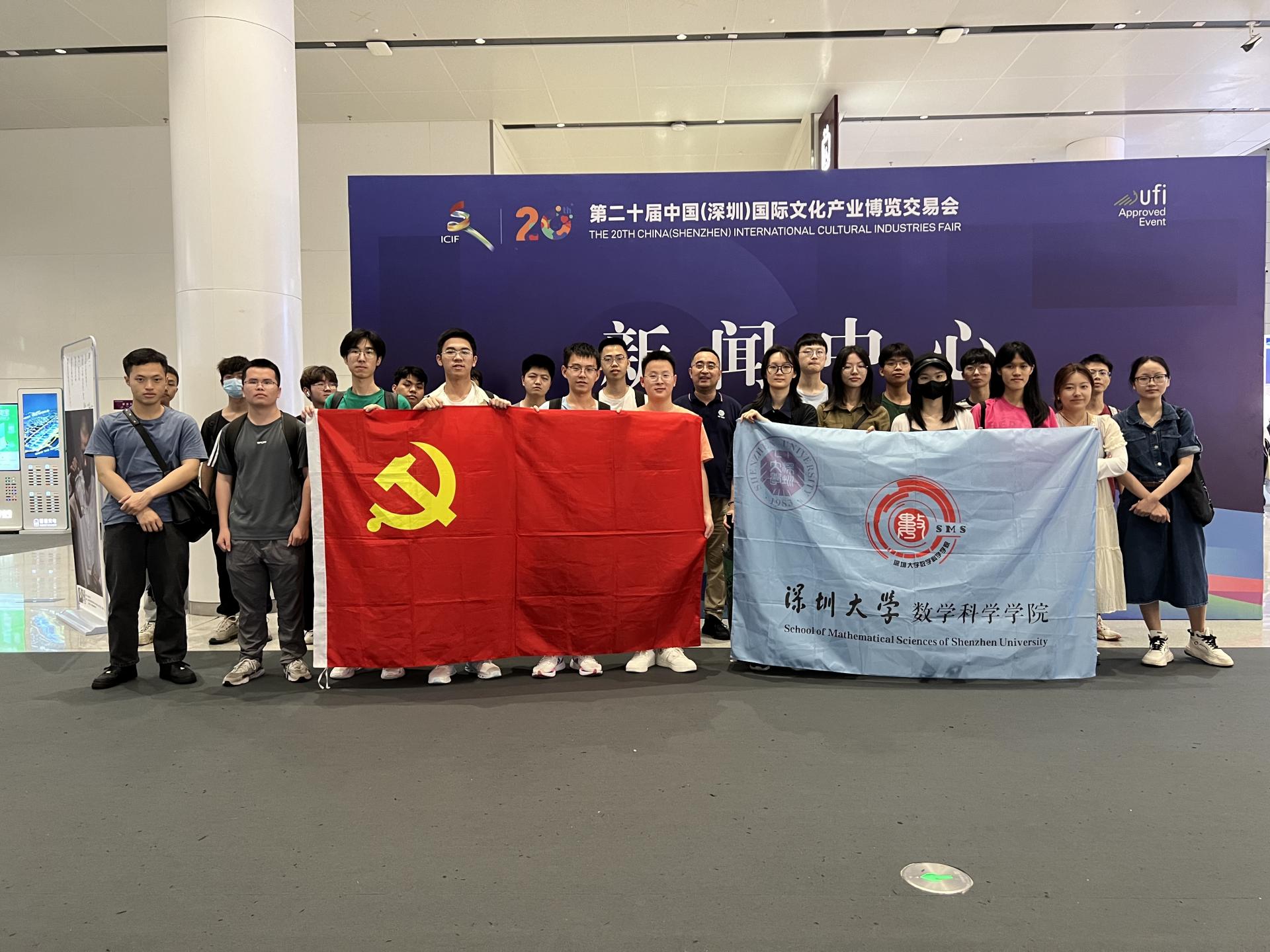 2024年5月26日,数学科学学院本科生第一党支部齐聚深圳国际会展中心,开展了一次别开生面的党日活动。此次活动以参观第二十届文博会(中国(深圳)国际文化产业博览交易会)为主要内容,旨在通过实地参观学习,加深对文化产业的了解,增强文化自信。本次活动由本科生第一党支部书记陈波老师带领,共有正式党员、预备党员、发展对象以及积极分子等27人参加。