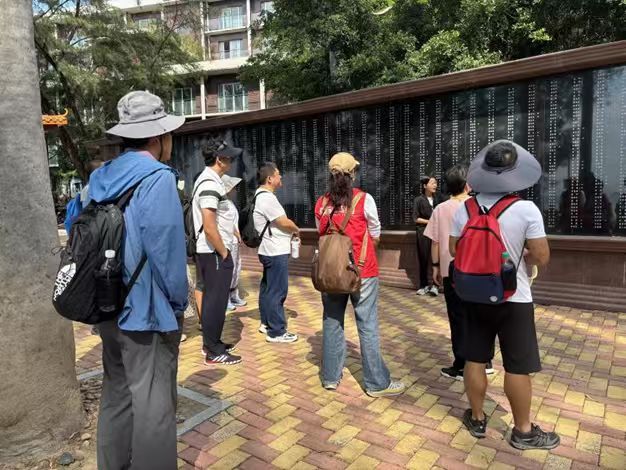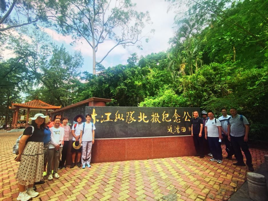 下午,党员老师们来到东江纵队北撤纪念公园。1946年6月30日,为避免内战,争取和平,根据《双十协定》,东江纵队等华南抗日武装执行中央战略,集结2583名北撤人员,在司令员曾生领导的军政委员会带领下,从大鹏湾—沙鱼涌乘船北撤至山东烟台。和平协议被破坏后,北撤部队参与了豫东、济南、淮海等战役,与留下的东江纵队人员共同为解放战争胜利作出贡献。北撤纪念公园内墙壁上刻着的北撤部队军政委员会和参加东江纵队北撤指战员名单,以及陈列着的相关历史照片,生动再现了东江纵队为了国内和平而北撤的历史事迹。在参观过程中,老师们被东江纵队爱党爱国,听党指挥、英勇斗争的精神深深打动,纷纷表示要继承和发扬这一优良革命传统。