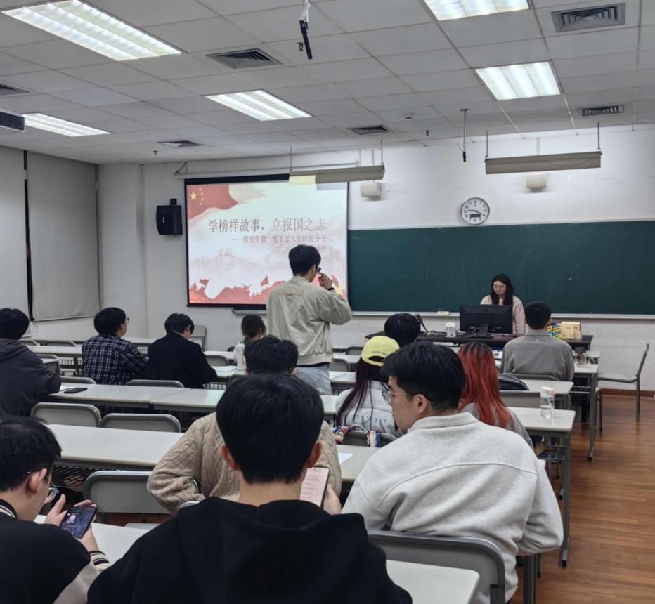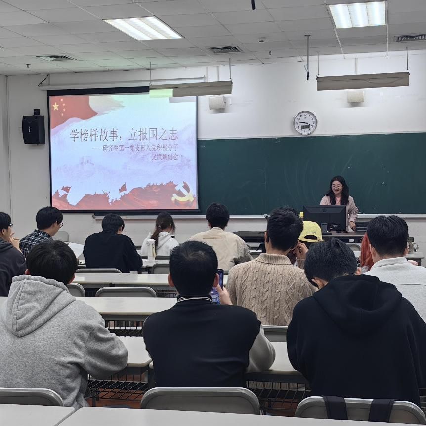 3月11日晚,研究生第一党支部于汇文楼H1-102召开入党积极分子学习研讨会,以“学榜样故事,立报国之志”为主题,组织支部全体党员及入党积极分子围绕《中国近现代数学家的爱党报国故事》开展学习交流。研究生第一党支部书记胡宗良副教授出席本次会议。