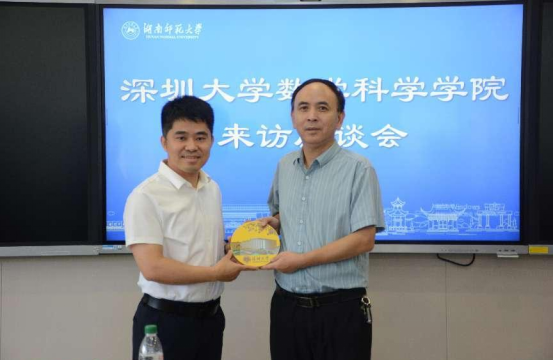 湖南师范大学数学与统计学院党委书记颜中玉、科研副院长黄元秋、教学副院长郭永霞、数学系系主任赖柏顺、统计与金融数学系系主任周杰明、应用统计专业负责人谢璇、学工办主任李俐、研究生办主任孔璐璐等对我院此行表示热烈欢迎,双方展开了深入的交流。