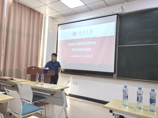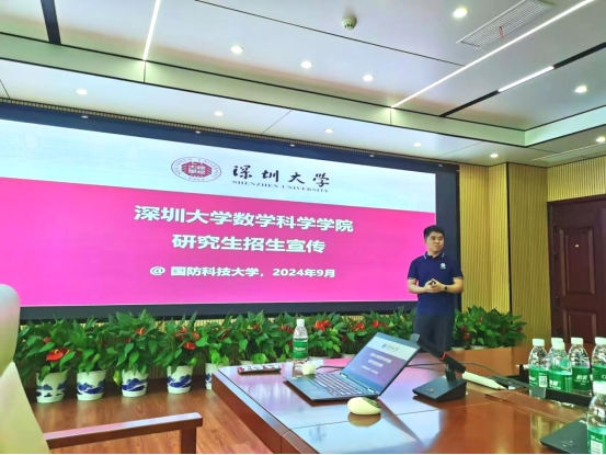 2024年9月11日下午,深圳大学数学科学学院副院长胡耀华前往湖南大学数学学院进行研究生招生宣传。湖南大学数学学院白敏茹教授和陈亮教授、工商管理学院田博士教授等对我院此行表示热烈欢迎,并举行了招生宣讲会。